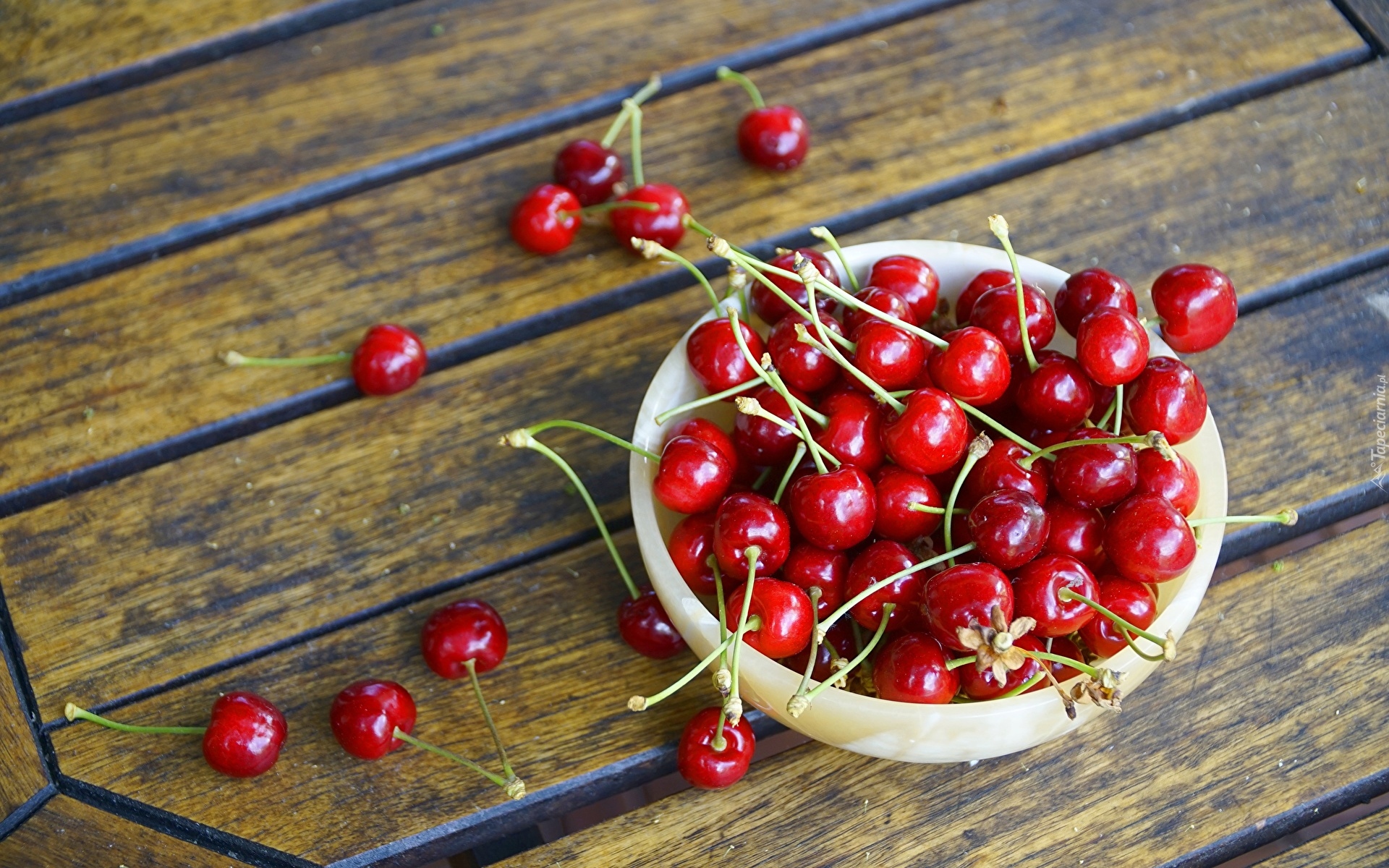 Edytor tapety: Wiśnie w małej miseczce
