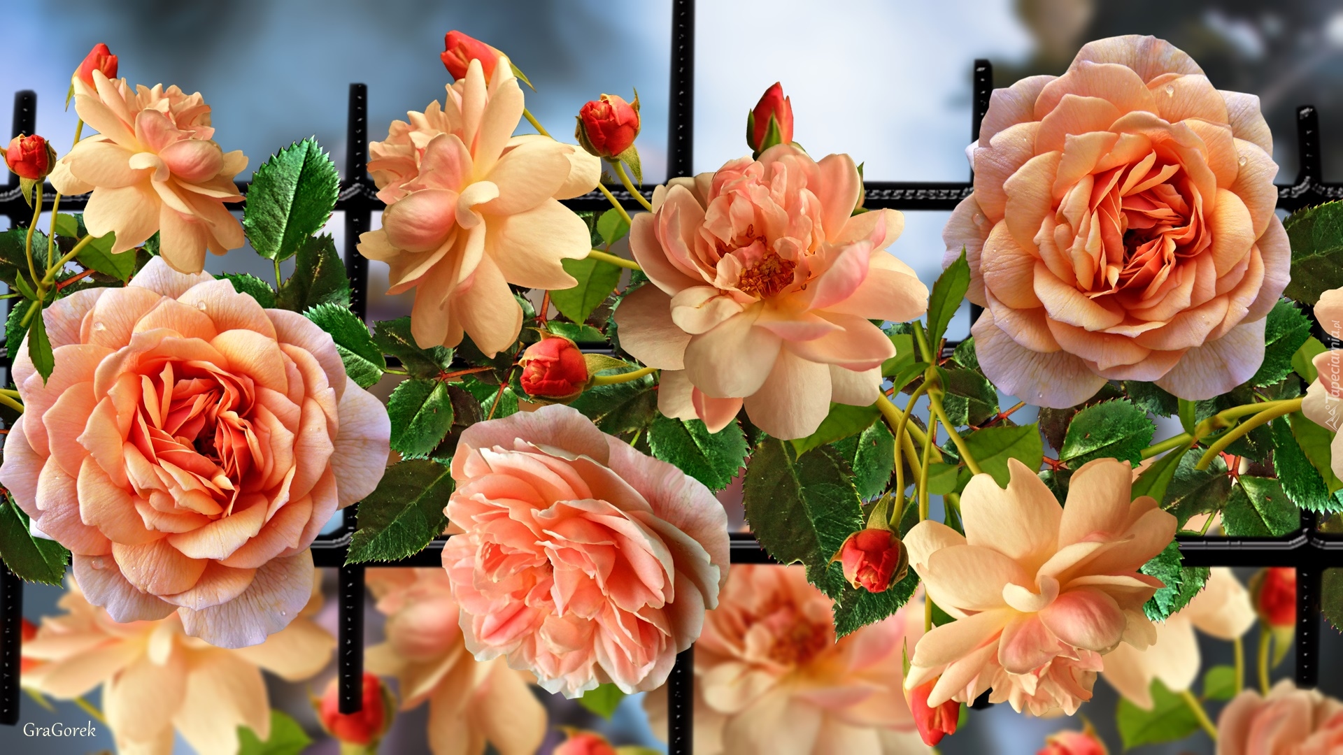 Edytor tapety: Rozkwitnięte herbaciane róże z pąkami