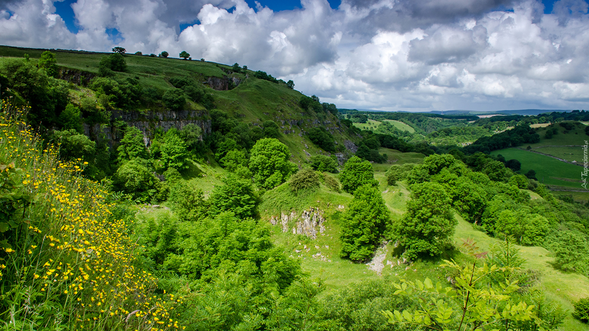 Edytor tapety: Widok na zielone wzgórza