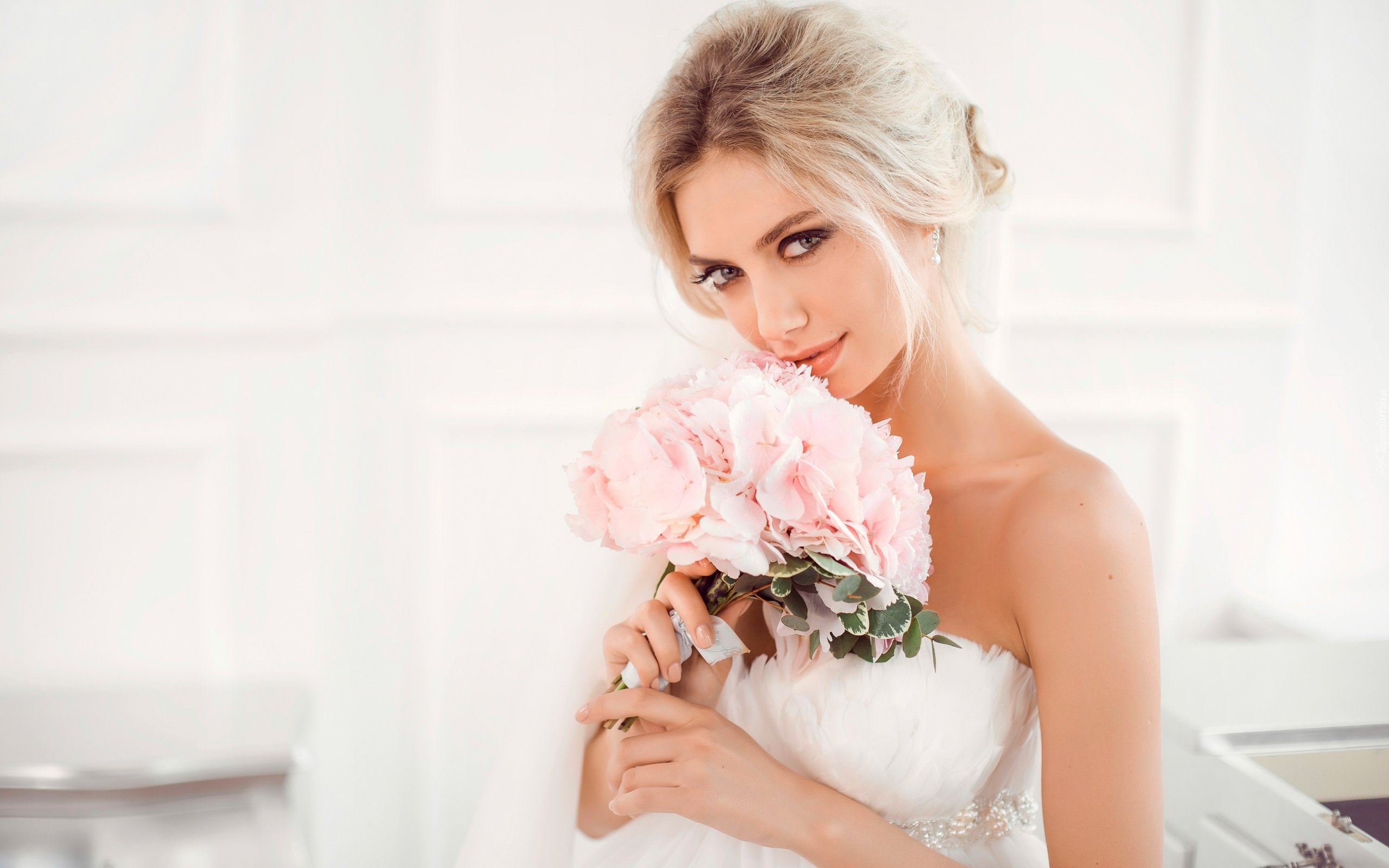 Edytor tapety: Panna młoda z bukietem ślubnym