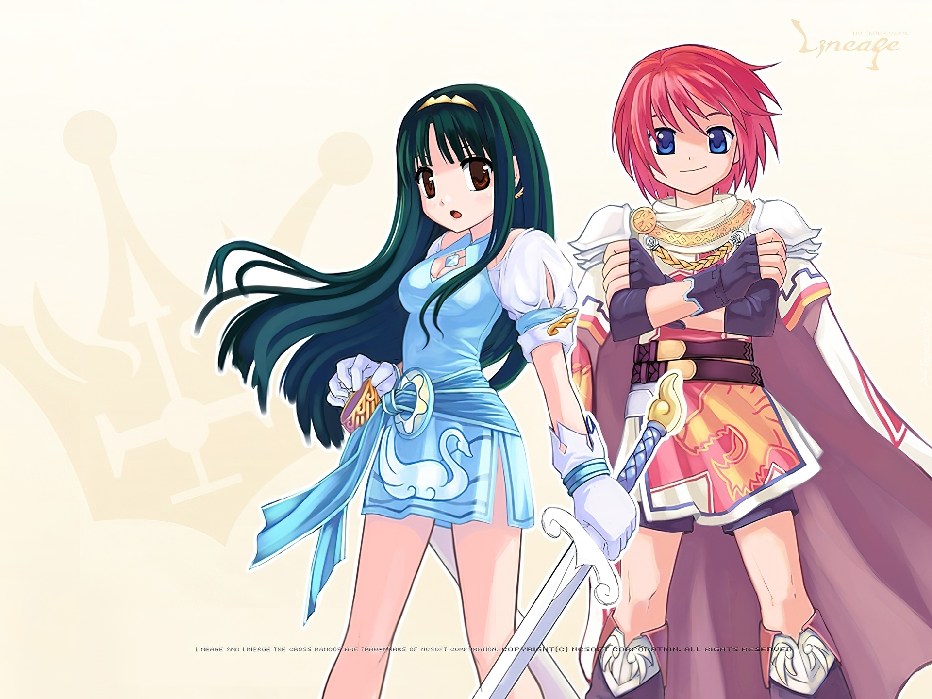 Edytor tapety: Lineage 2, postacie, kobieta, mężczyzna, miecz, wojownik
