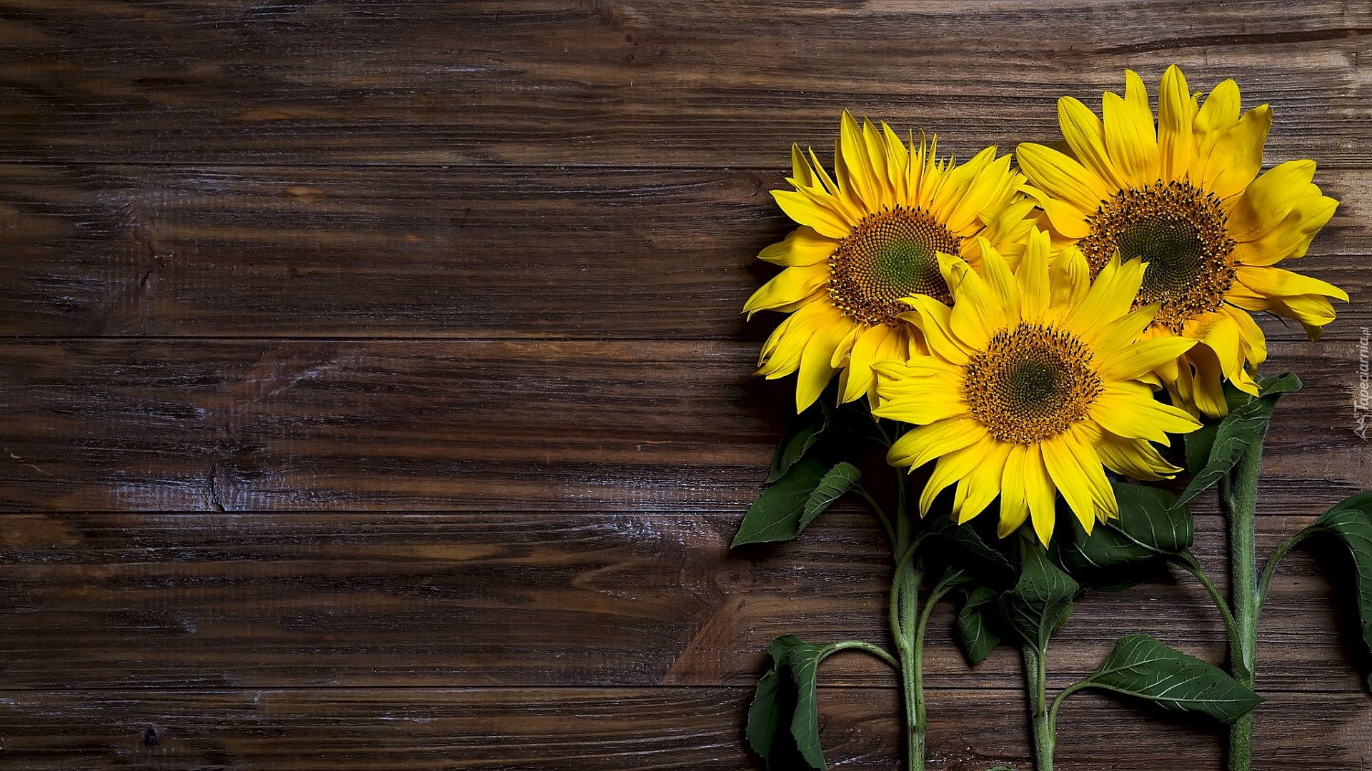 Edytor tapety: Trzy słoneczniki na deskach