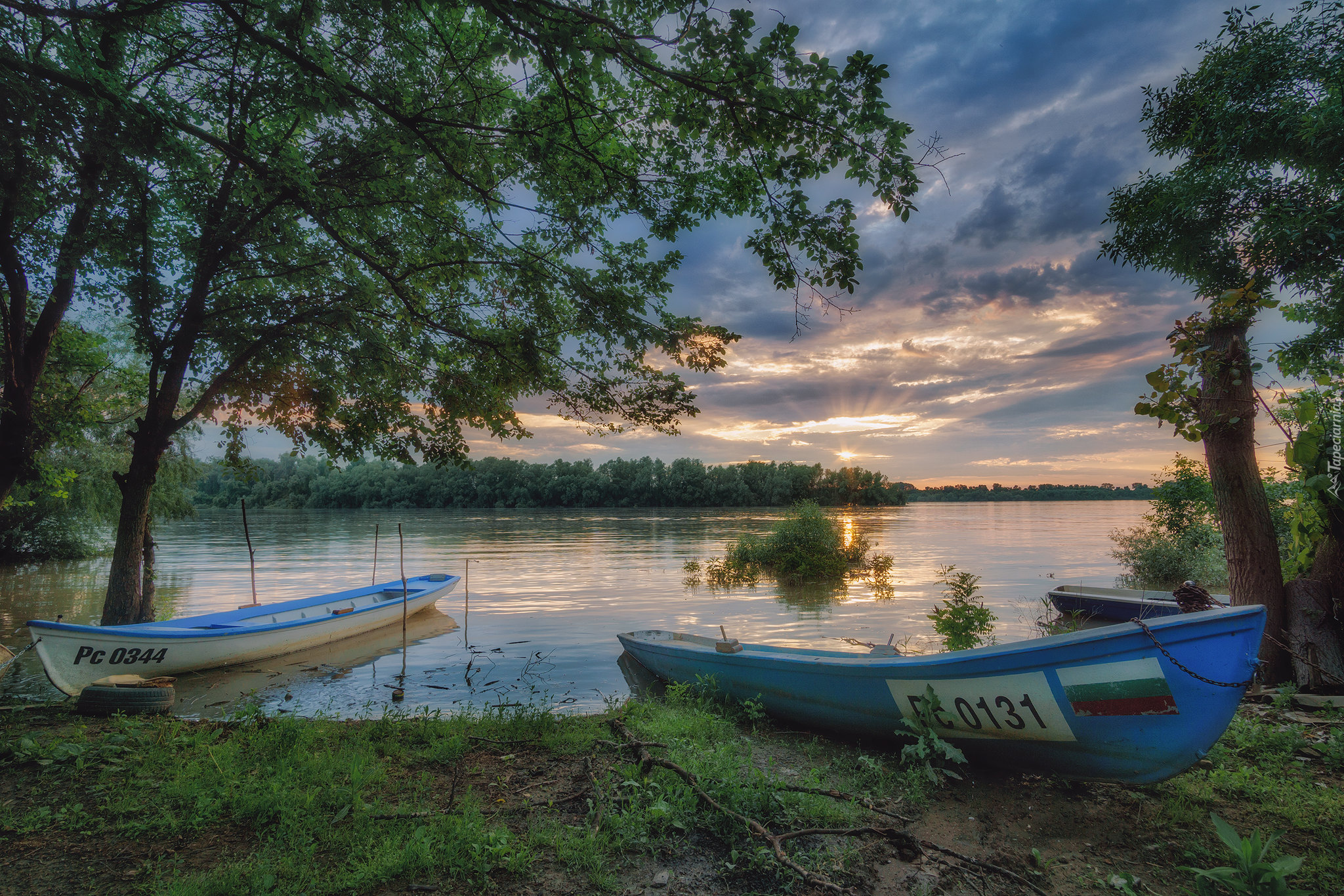 Edytor tapety: Dwie łódki nad brzegiem jeziora