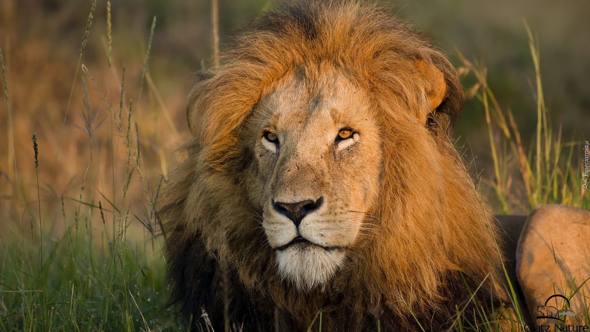 Edytor tapety: Lew leżący w trawie
