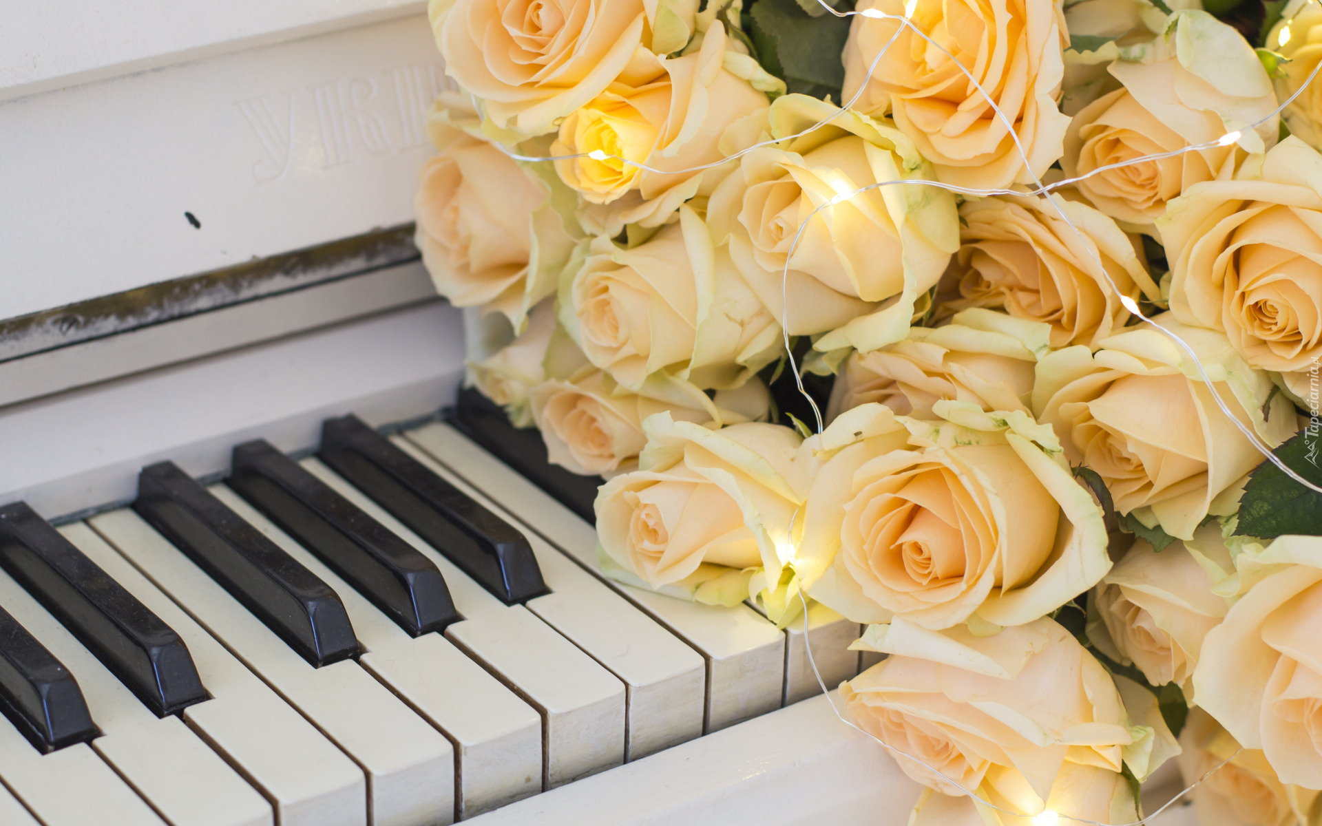 Edytor tapety: Żółte róże na klawiszach
