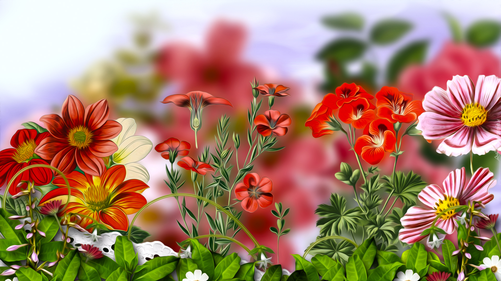 Edytor tapety: Kwiaty na rozmytym tle w 2D