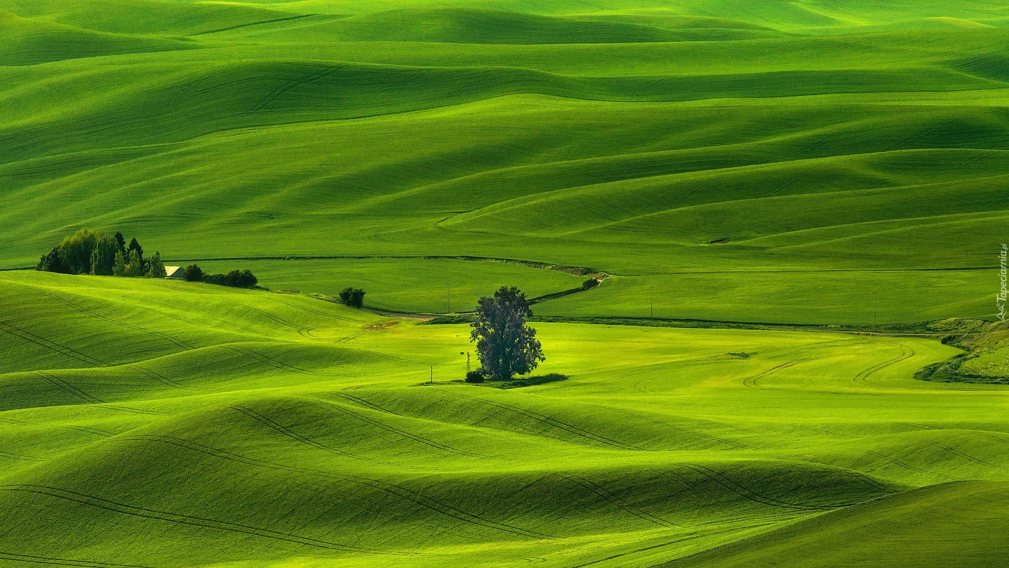 Edytor tapety: Drzewa na zielonych wzgórzach Palouse