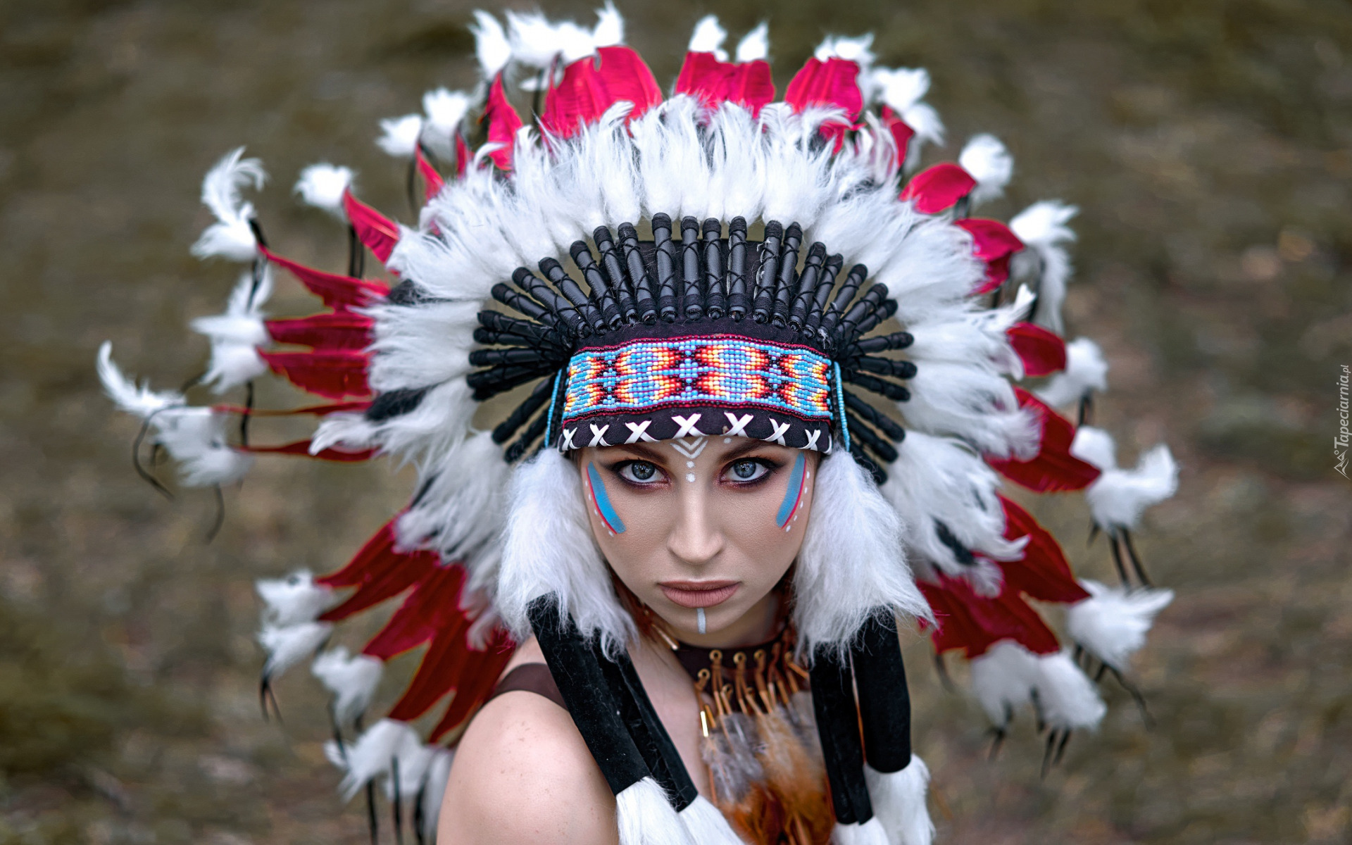 Edytor tapety: Indianka w kolorowym pióropuszu