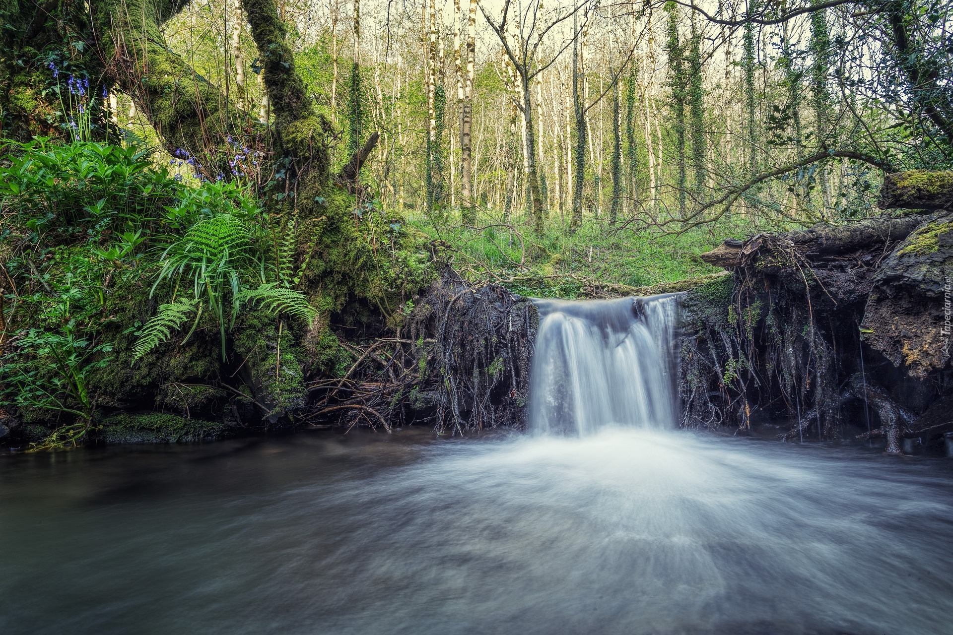 Edytor tapety: Paproć przy strumieniu wpadającym do rzeki