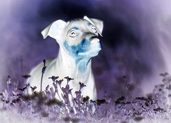 Edytor tapety: Pies wśród białych kwiatków na łące