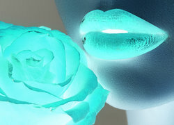 Edytor tapety: Usta kobiety przy czerwonej róży