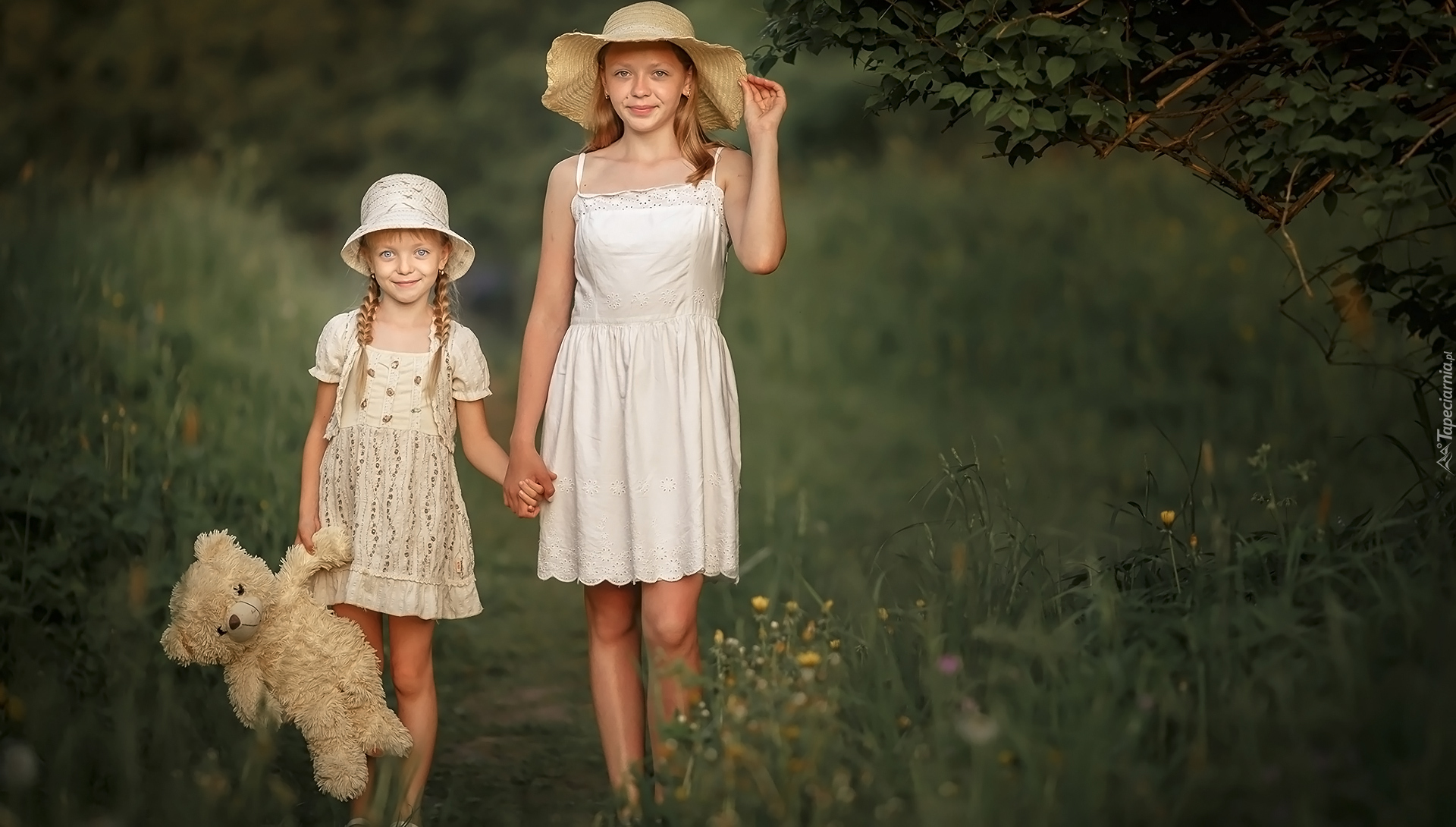 Edytor tapety: Dwie dziewczynki w kapeluszach