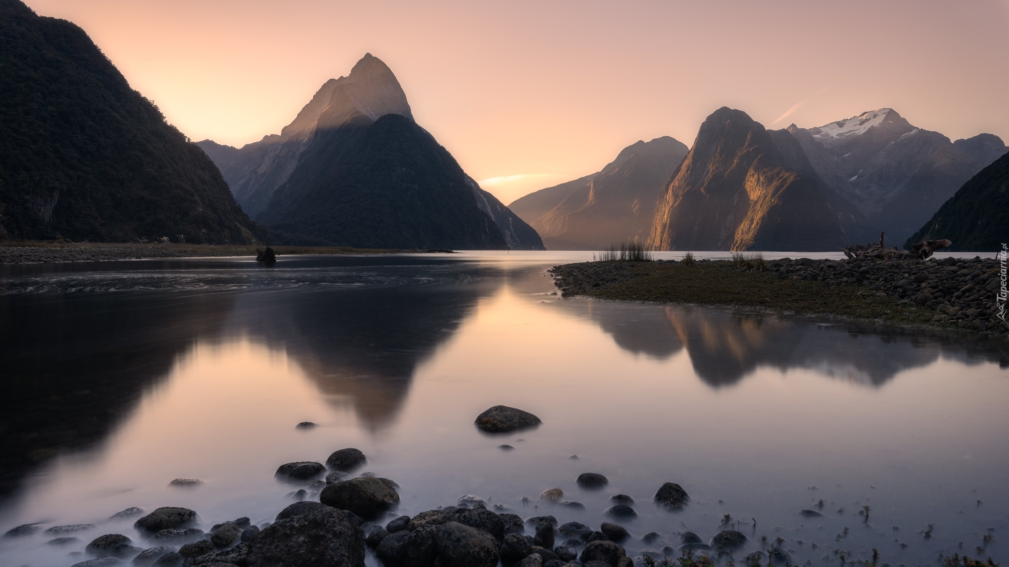 Edytor tapety: Alpy Południowe nad Zatoką Milforda w Nowej Zelandii
