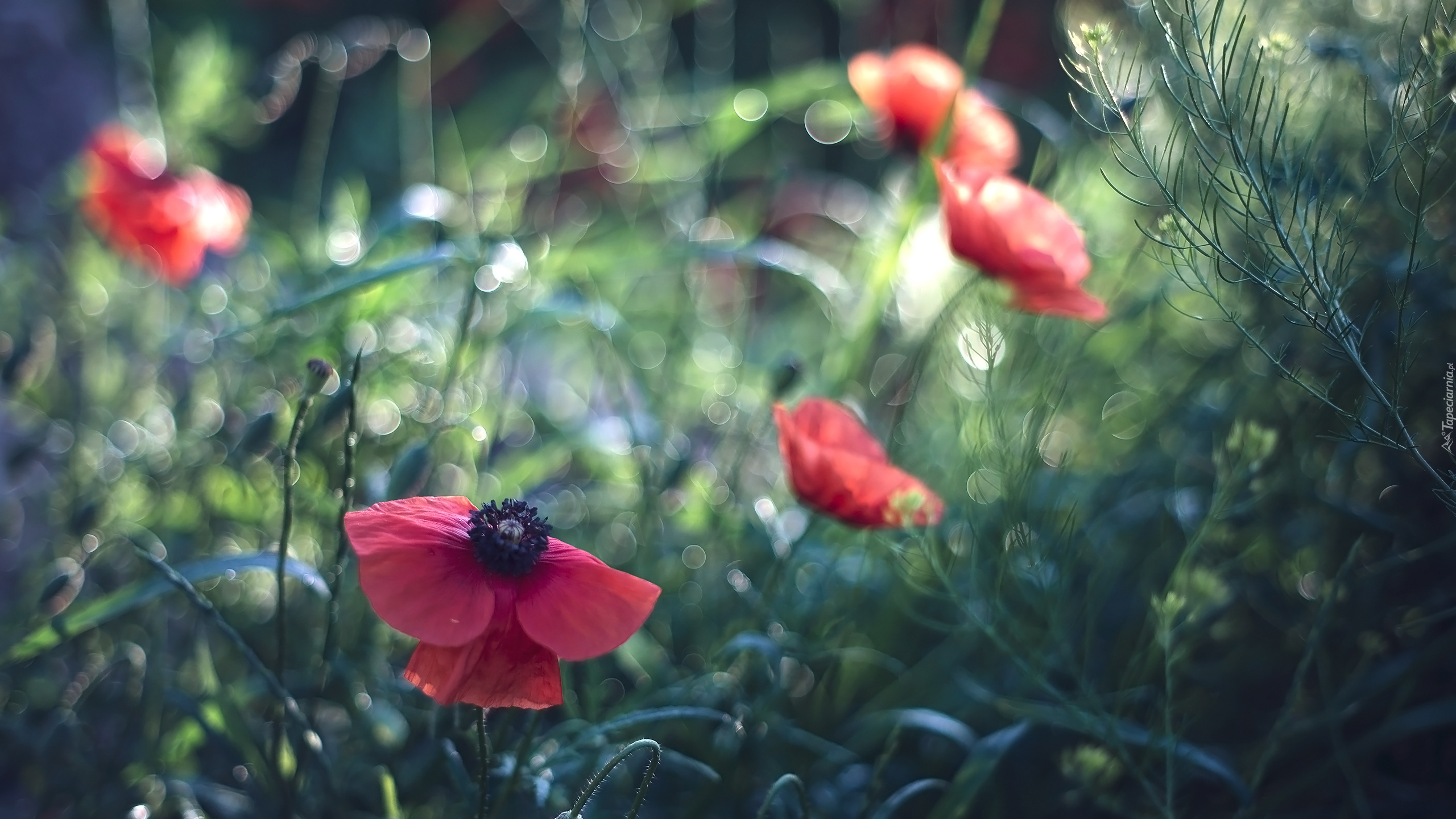 Edytor tapety: Rozwinięte maki z pąkami na rozmytym tle