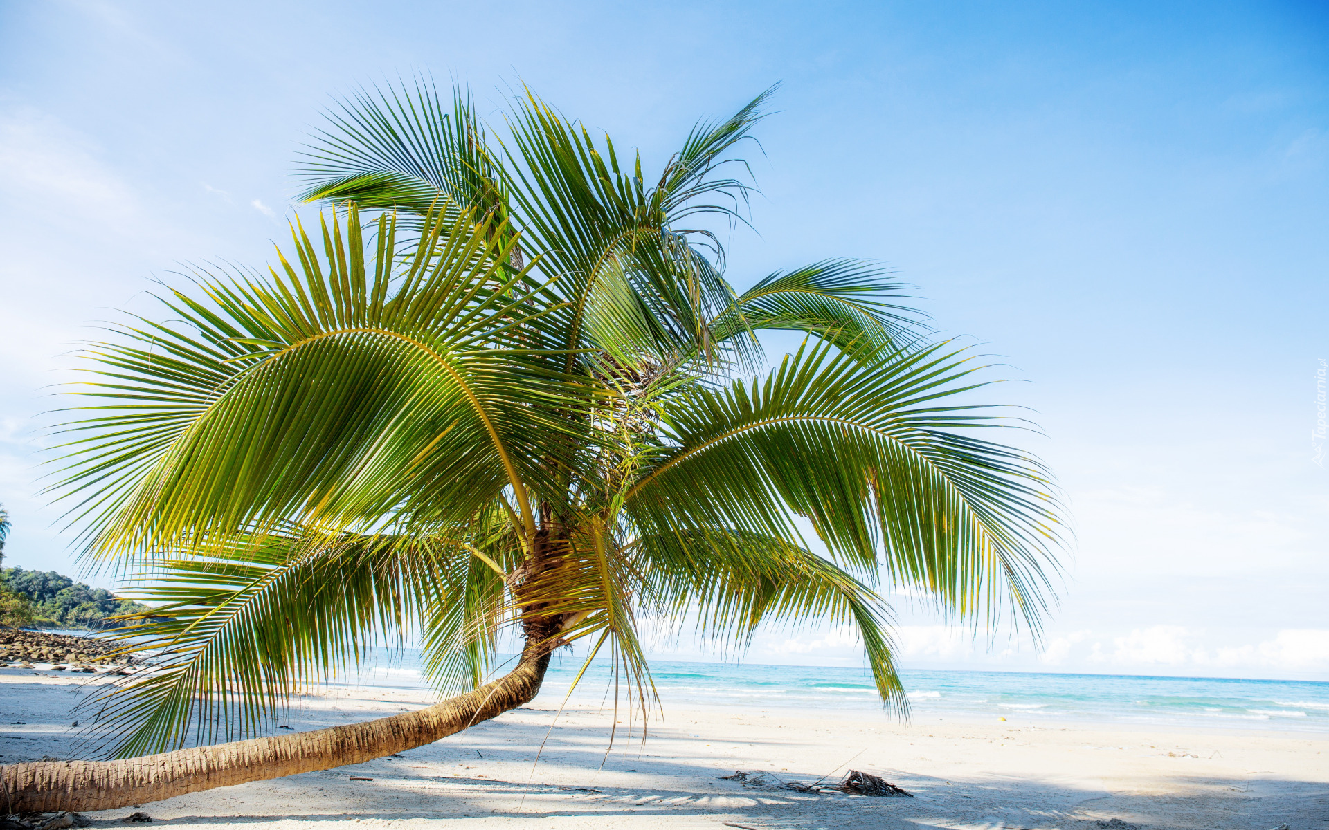 Edytor tapety: Pochyła palma na plaży