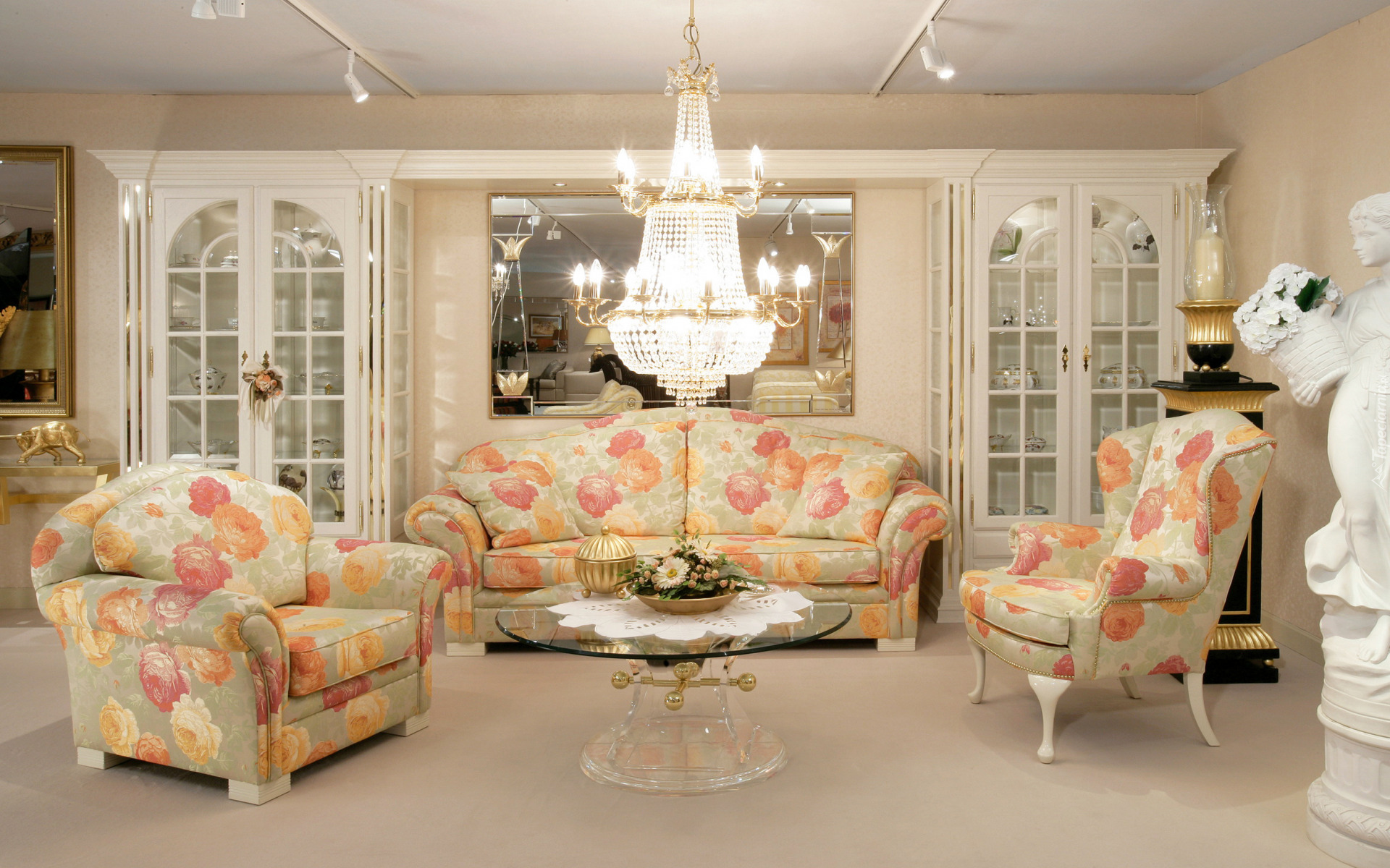Edytor tapety: Wzorzyste fotele i kanapa w salonie