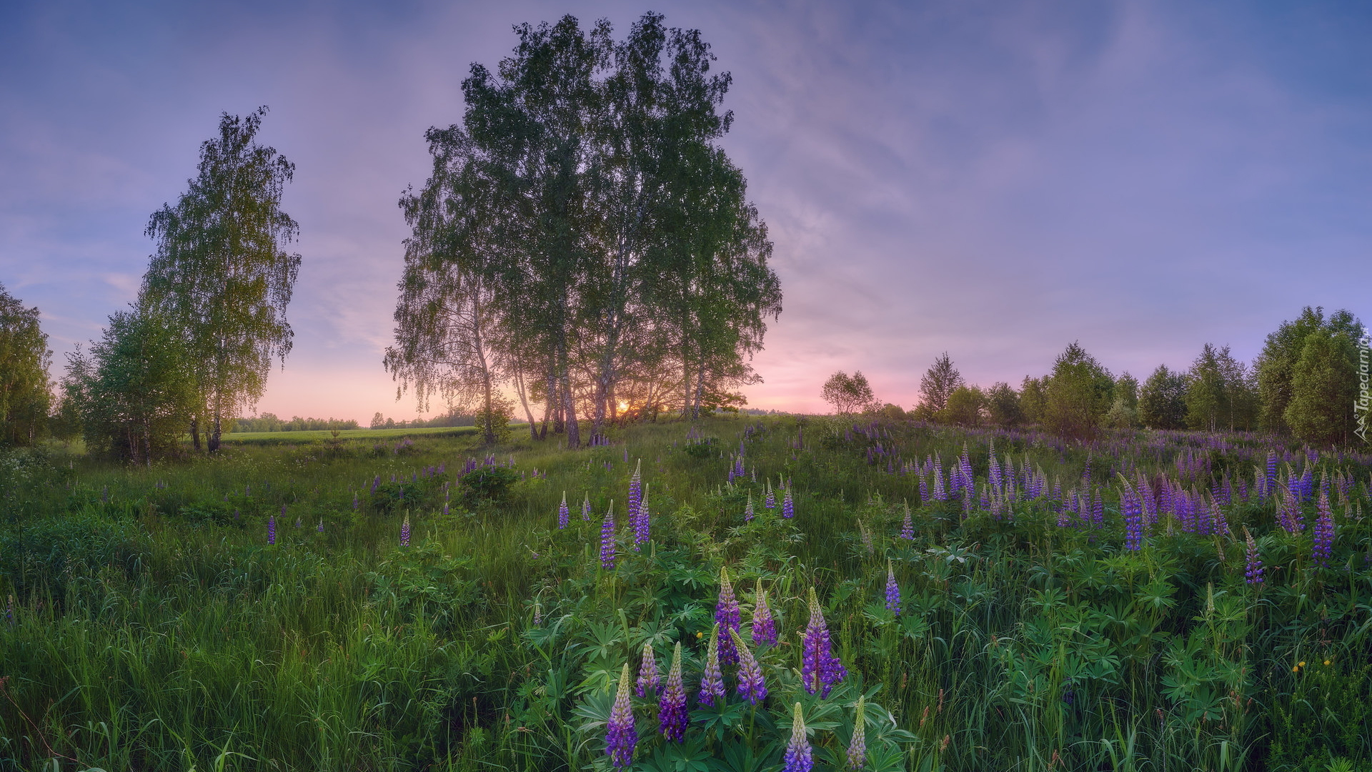 Edytor tapety: Fioletowy łubin na zielonej łące