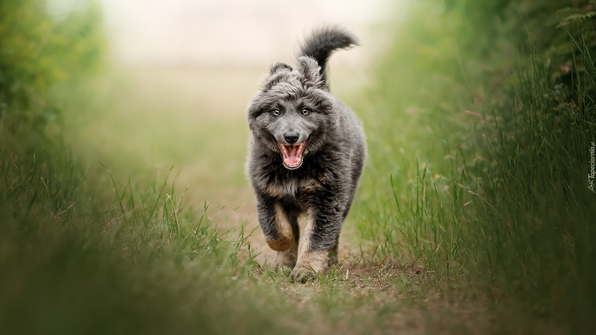 Edytor tapety: Szczeniak na ścieżce wśród traw