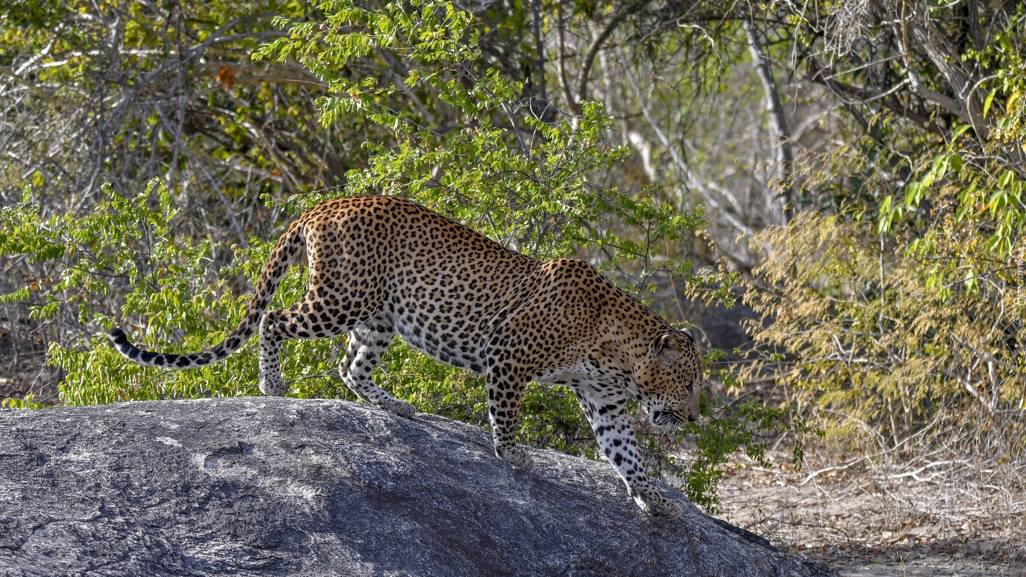 Edytor tapety: Lampart na kamieniu