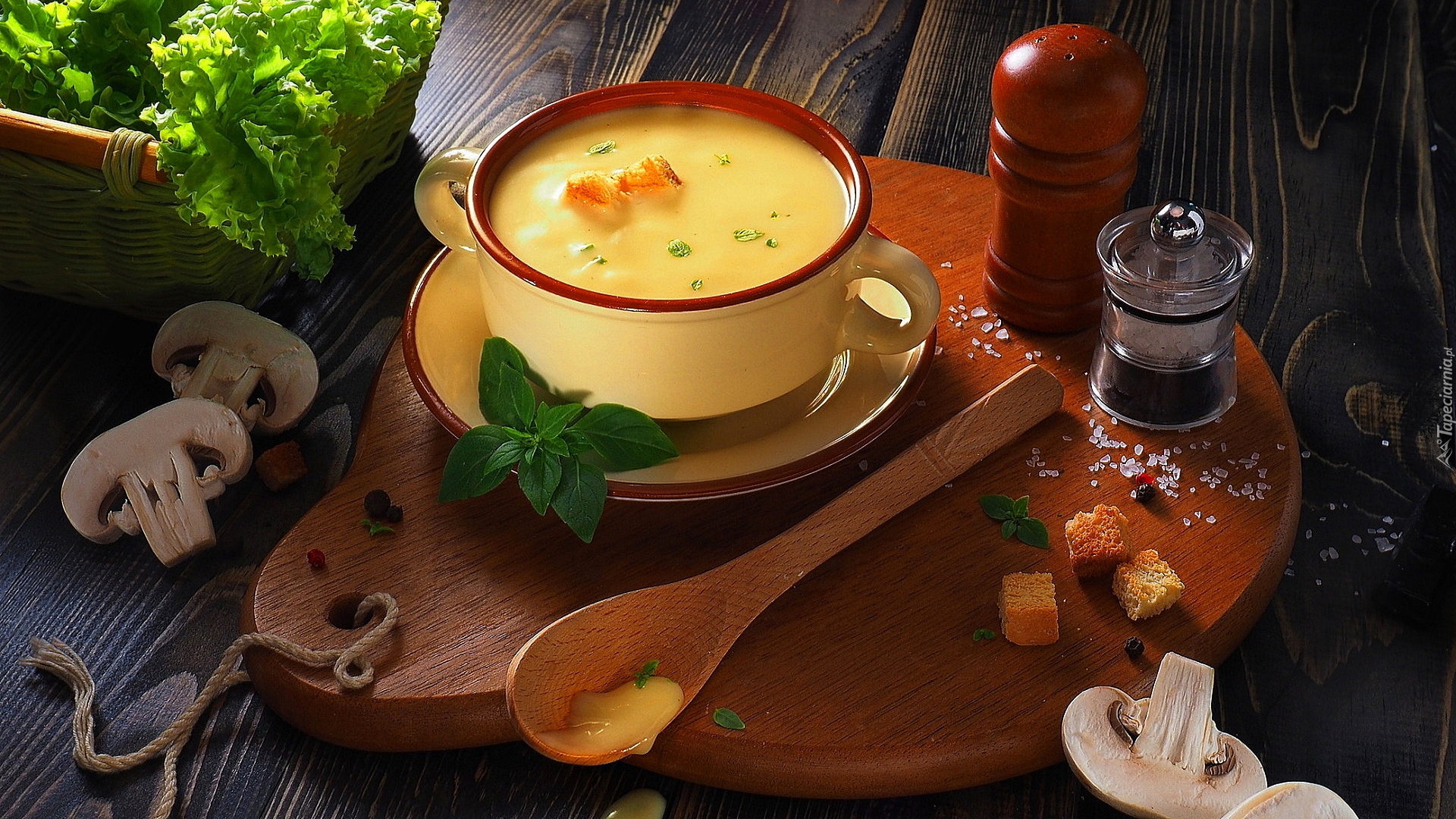 Edytor tapety: Pieczarkowa zupa krem z grzankami