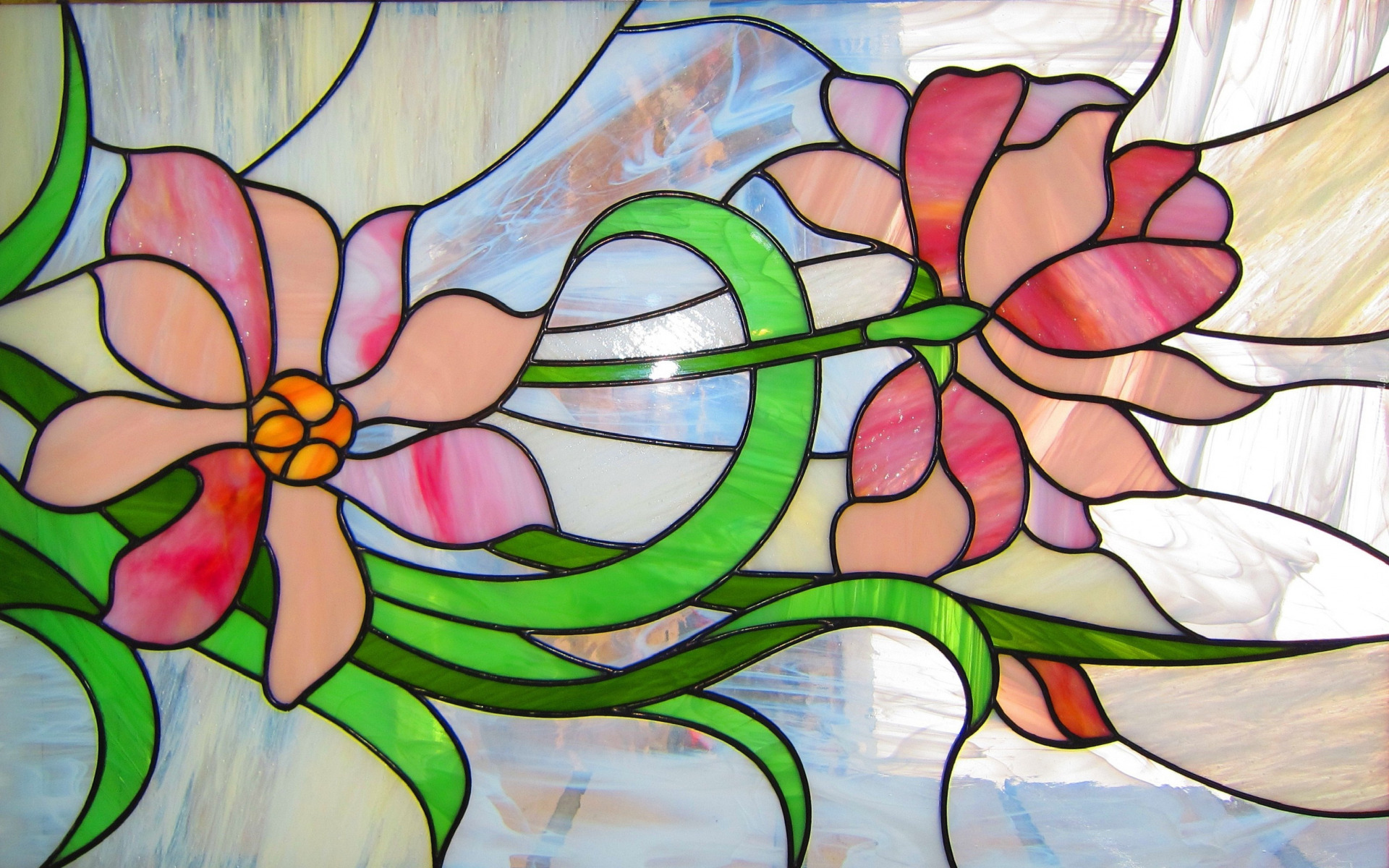 Edytor tapety: Witraż z różowymi kwiatami