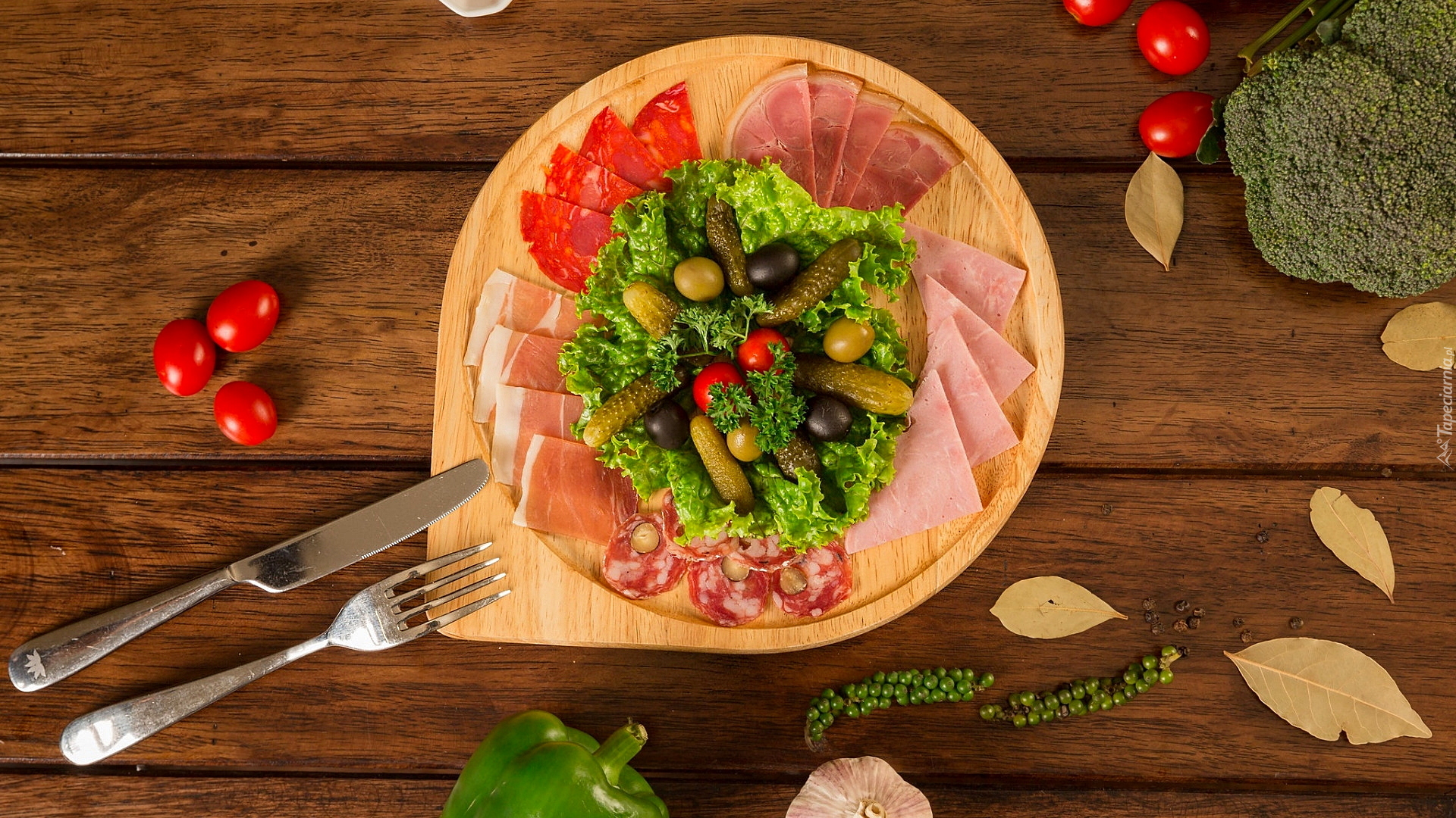 Edytor tapety: Wędliny i warzywa na desce
