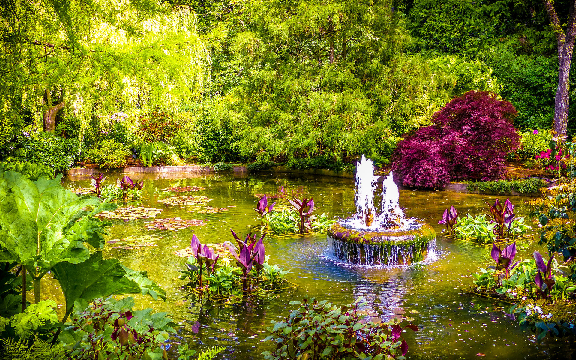 Edytor tapety: Fontanna w kanadyjskim ogrodzie Butchart Gardens