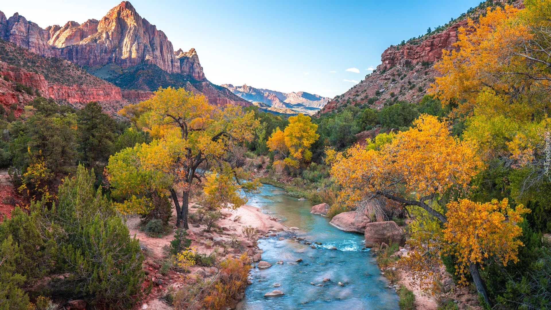 Edytor tapety: Rzeka Virgin River i góry Watchman w tle