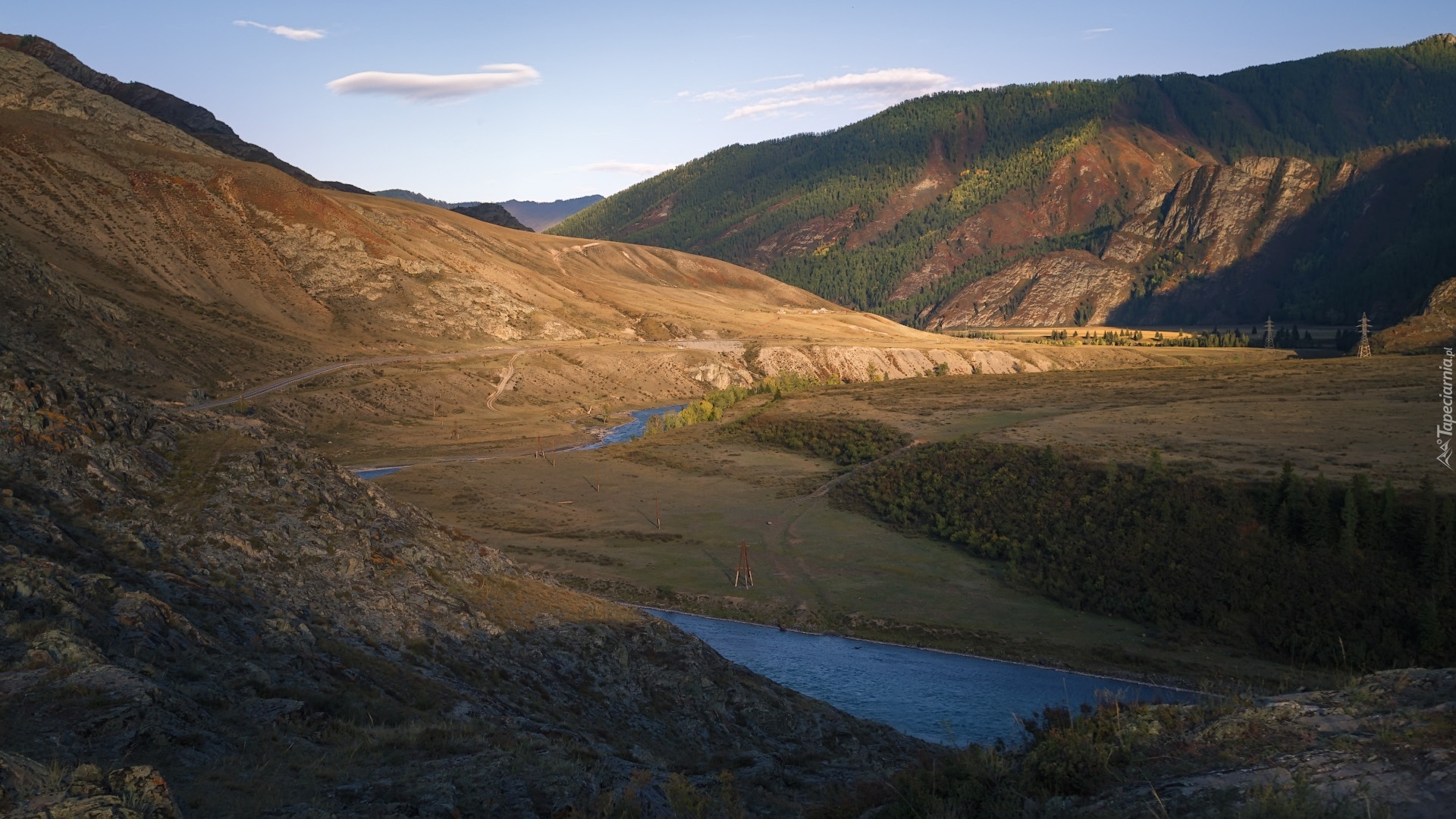 Edytor tapety: Zakole rzeki w górskiej dolinie