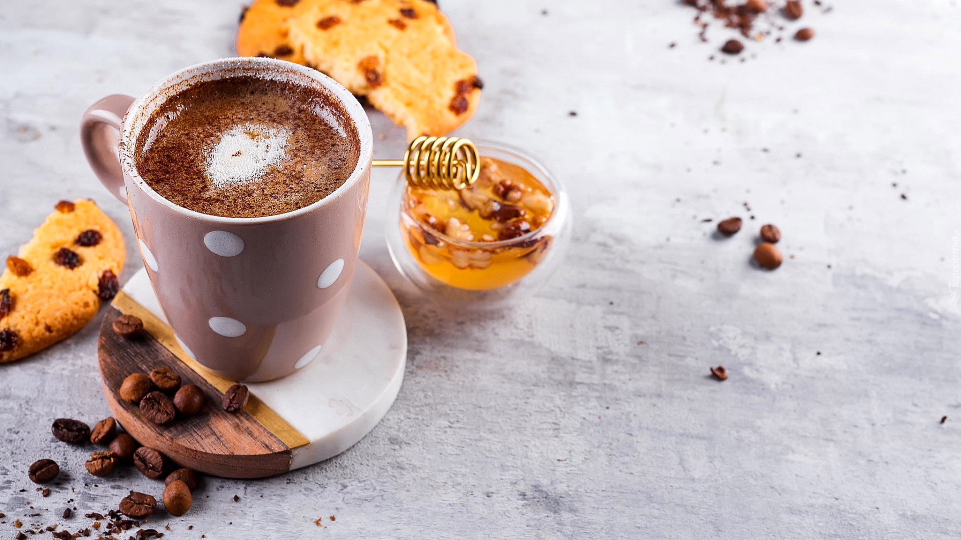 Edytor tapety: Kubek kawy obok miodu