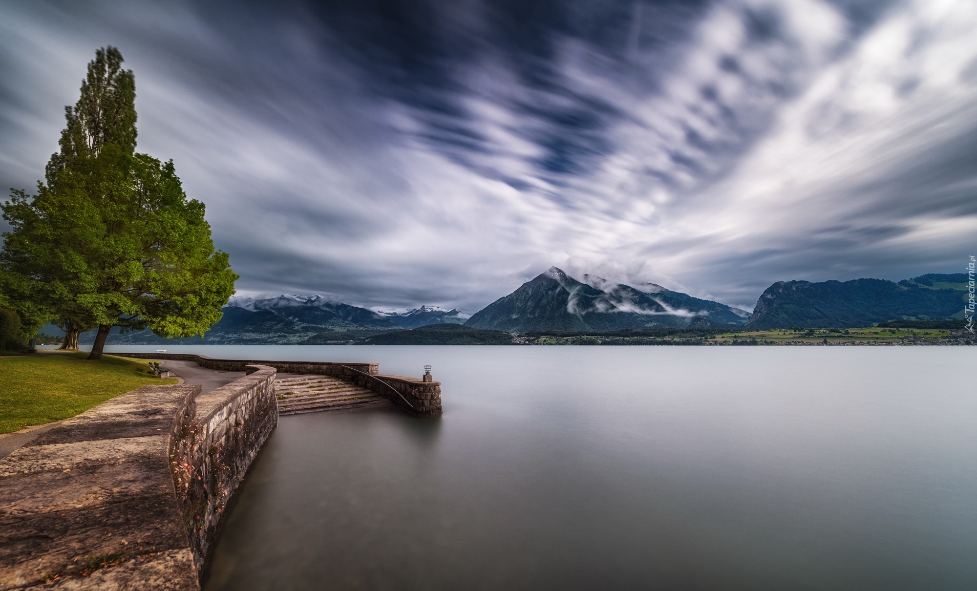 Edytor tapety: Jezioro Thunersee i widok na góry