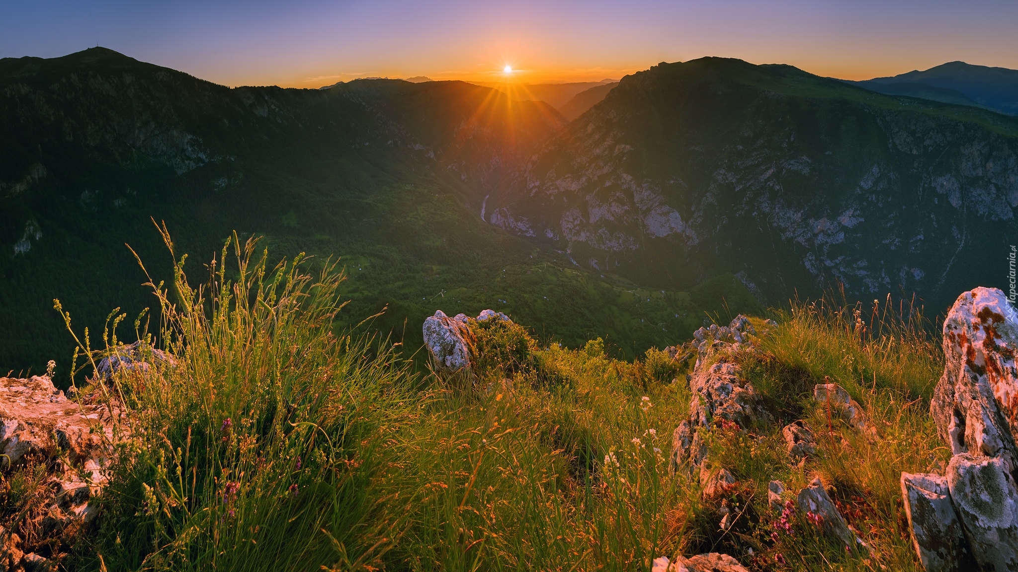 Edytor tapety: Wąwóz rzeki Tary w Czarnogórze o wschodzie słońca