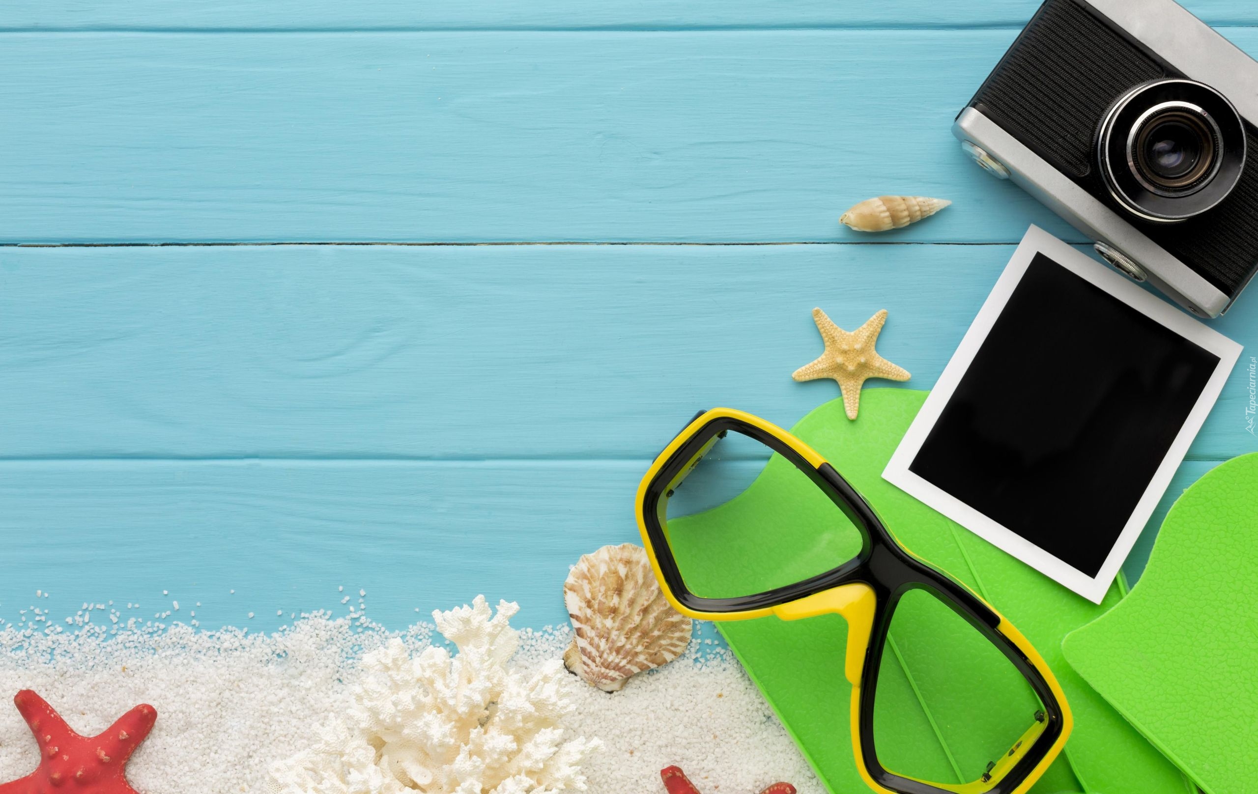 Edytor tapety: Zdjęcie obok okularów i aparatu fotograficznego