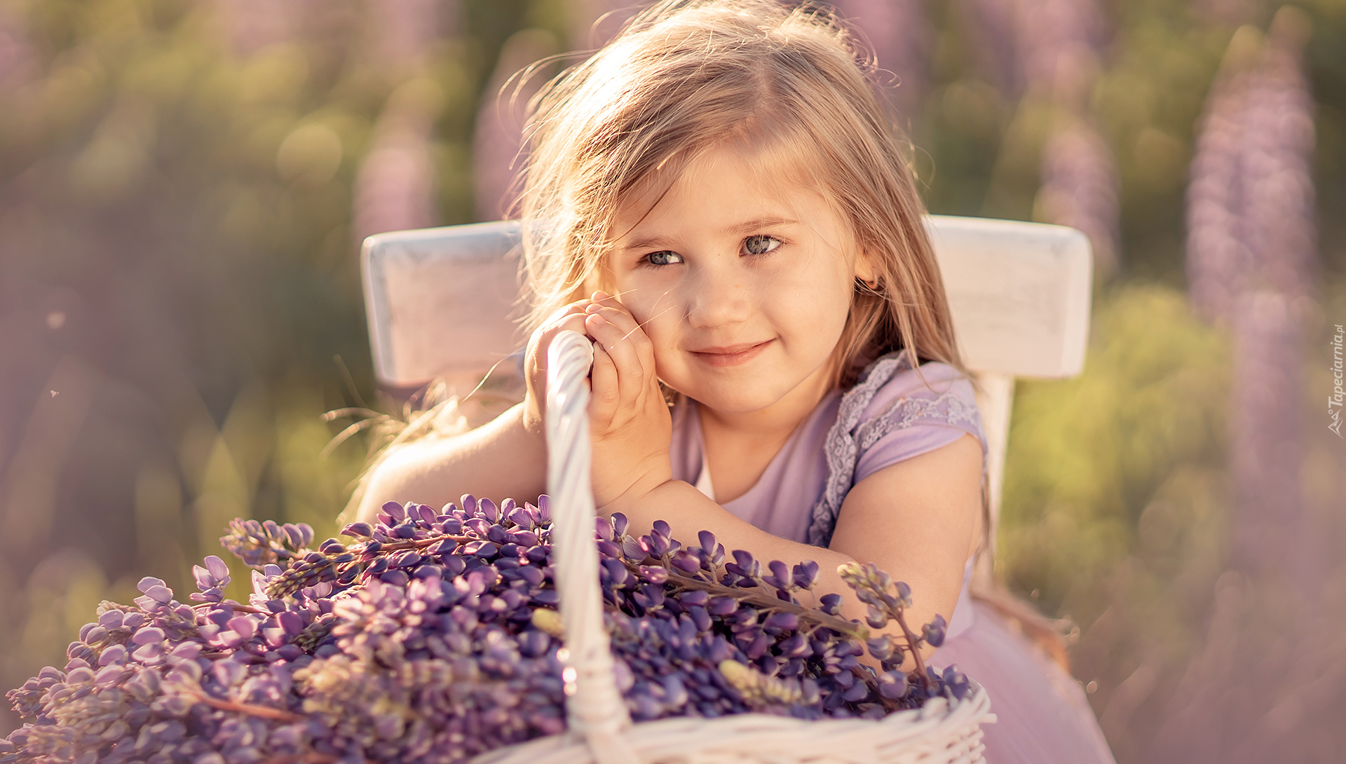 Edytor tapety: Uśmiechnięta dziewczynka z koszem łubinu