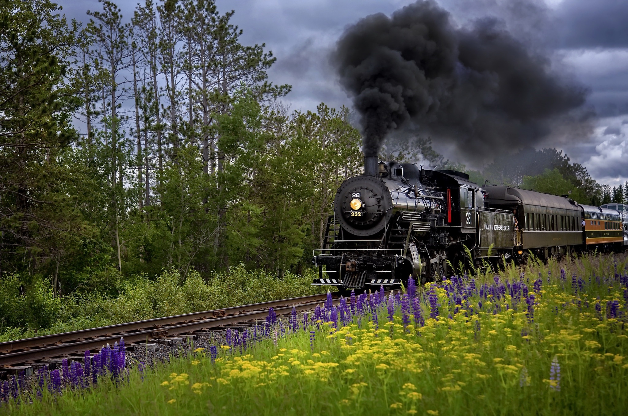 Edytor tapety: Czarny dym nad pociągiem parowym