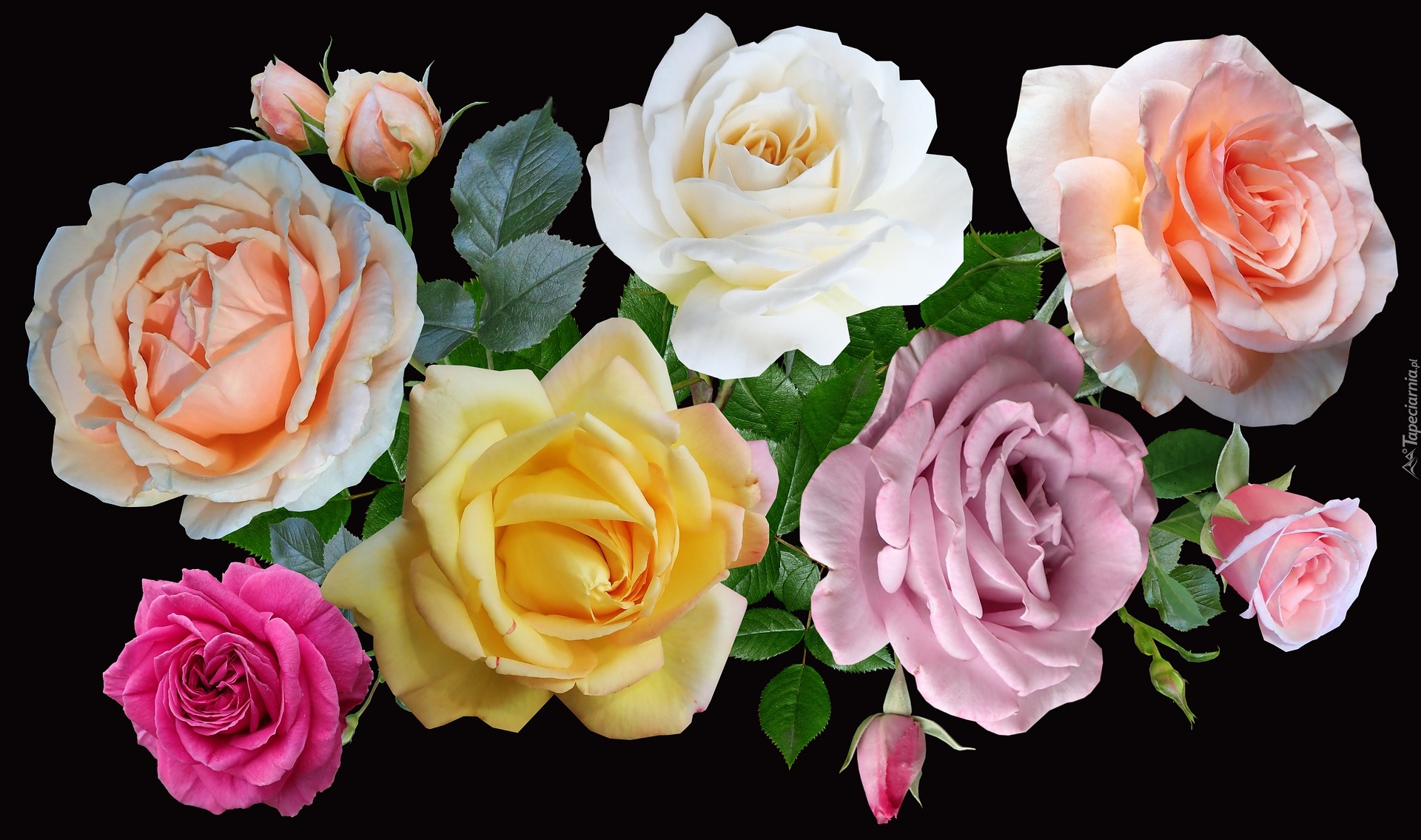 Edytor tapety: Kolorowe róże na czarnym tle