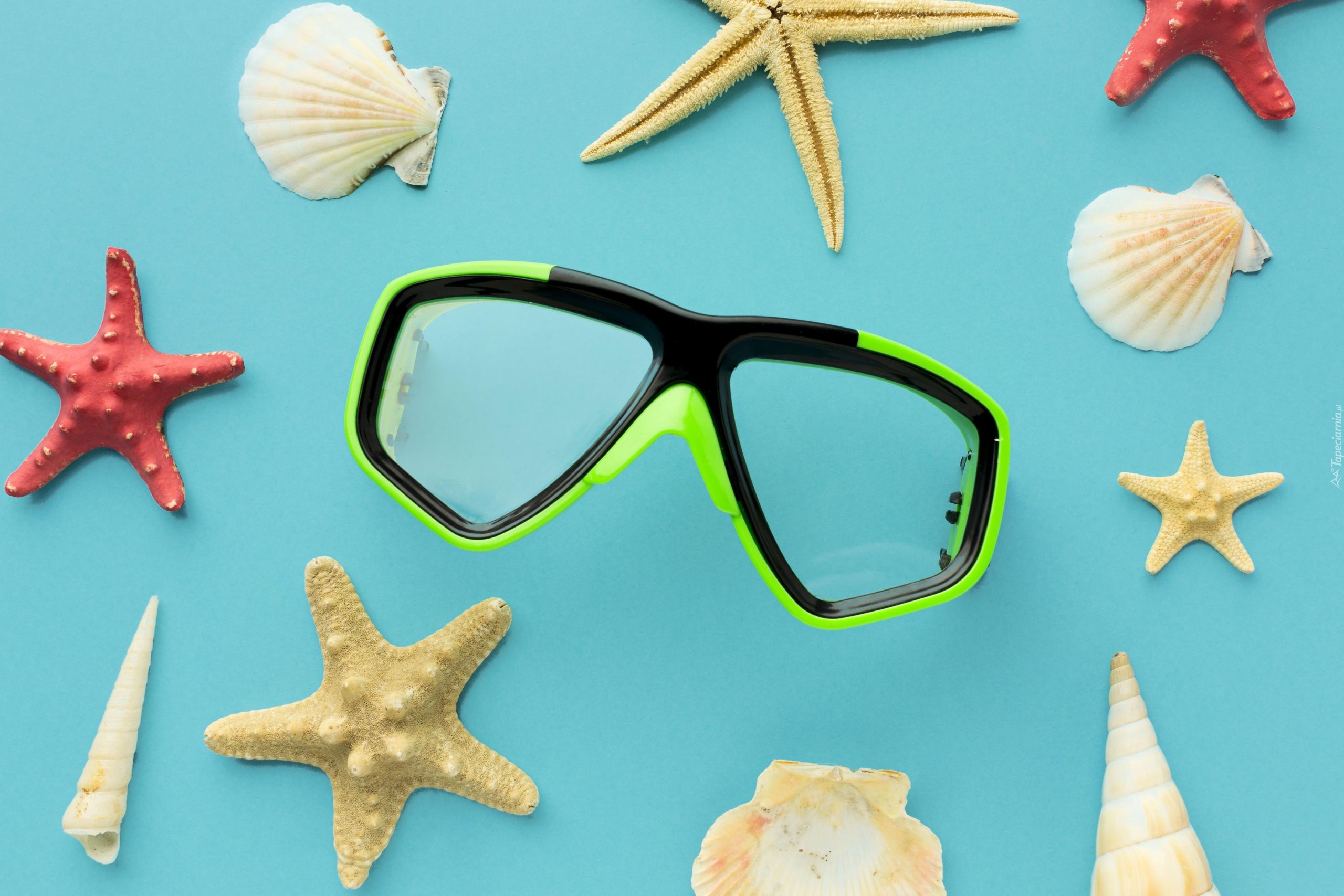Edytor tapety: Muszelki i rozgwiazdy wokół okularów