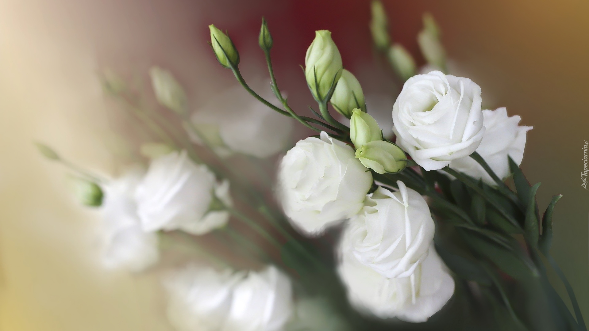 Edytor tapety: Białe eustomy na rozmytym tle