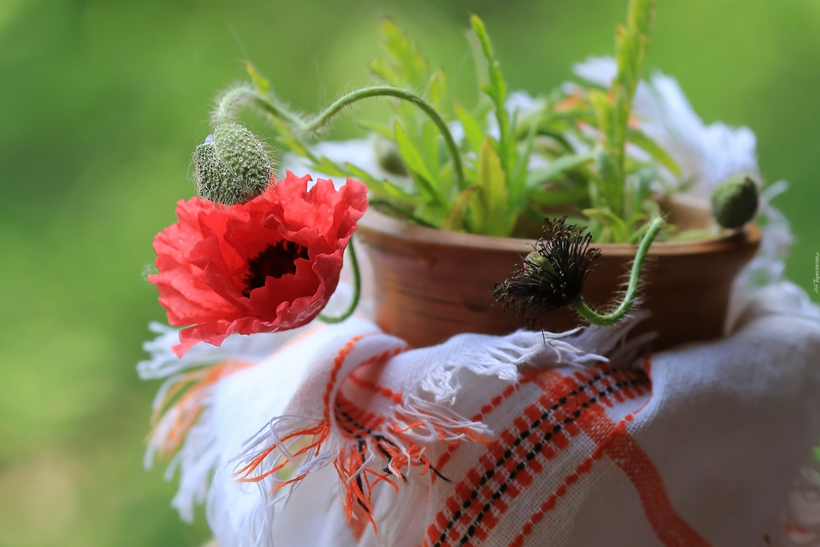 Edytor tapety: Rozwinięty mak z pąkami w donicy