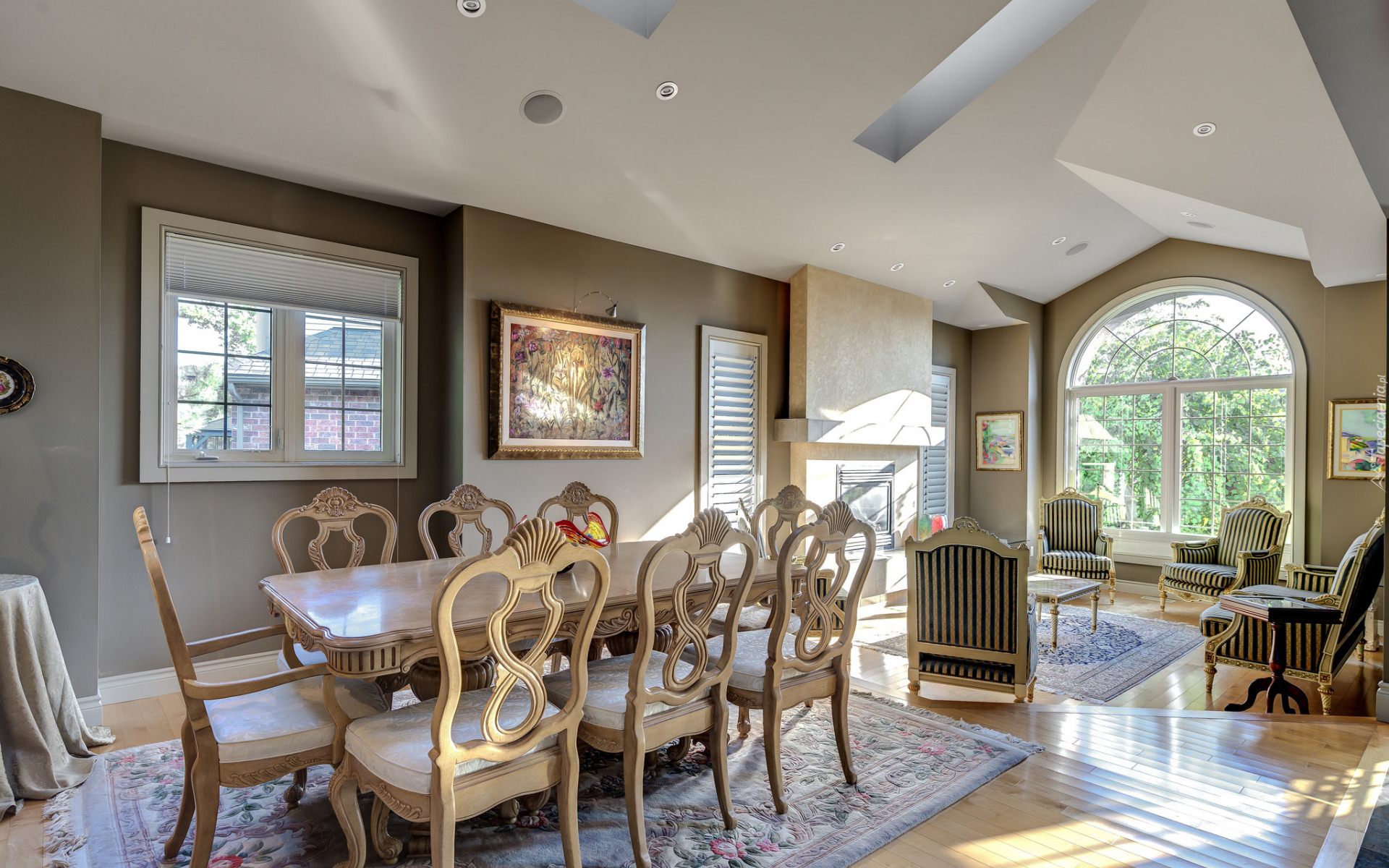 Edytor tapety: Stół z krzesłami i stolik kawowy z fotelami