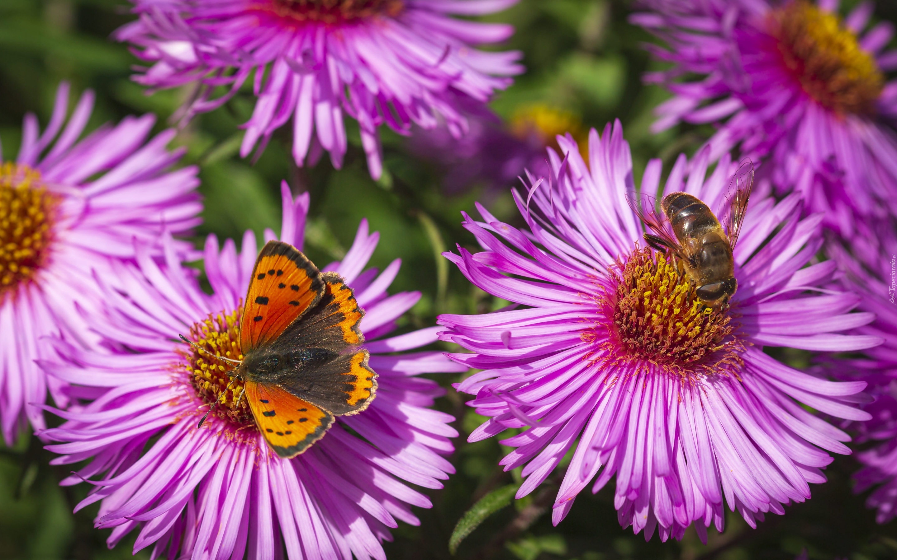 Edytor tapety: Pszczoła i motyl na astrach