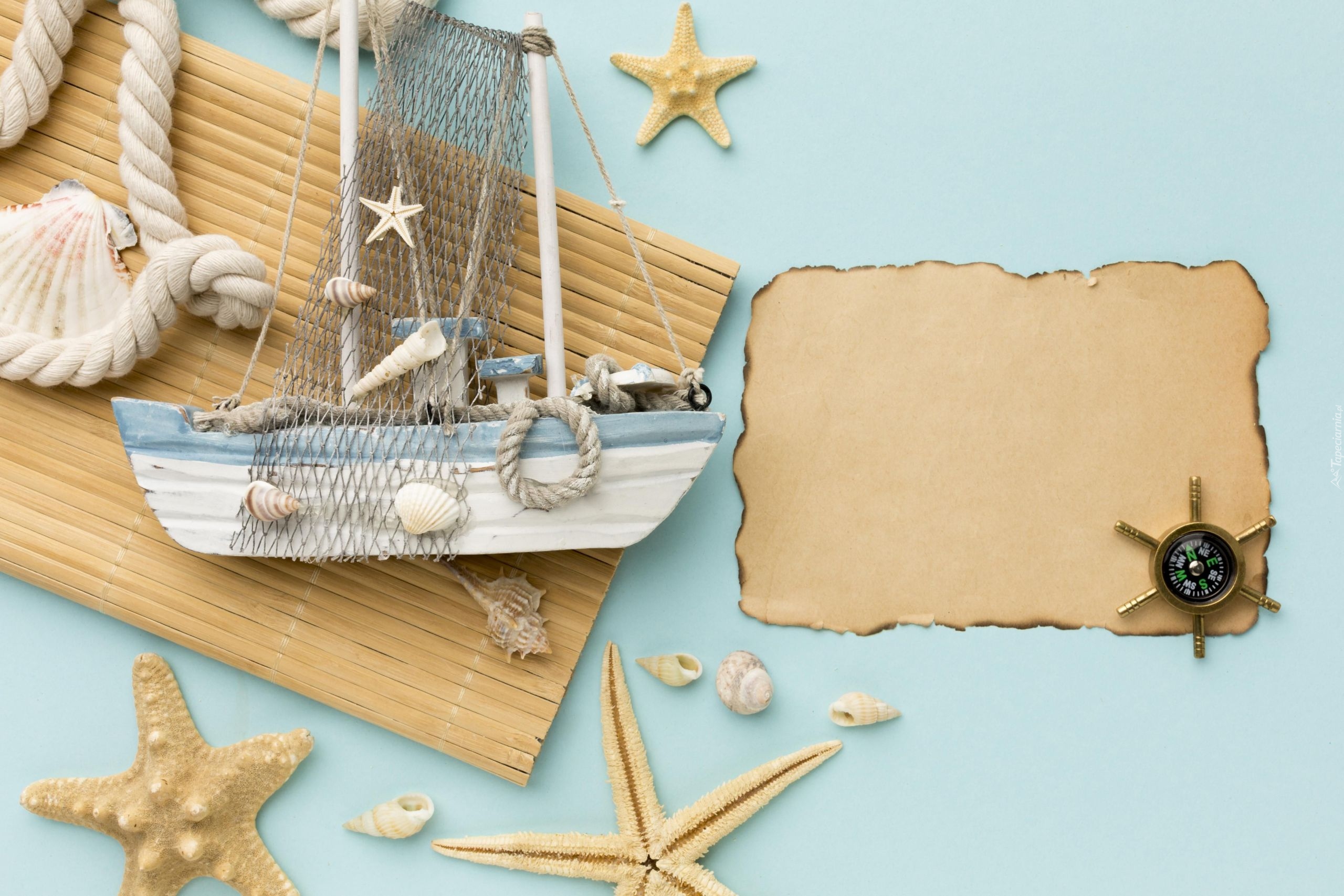 Edytor tapety: Kompozycja z rozgwiazdami i statkiem