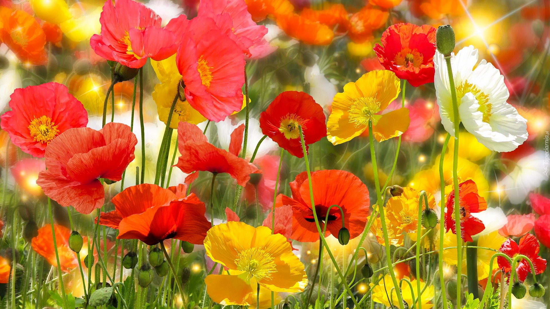 Edytor tapety: Rozwinięte żółte i czerwone maki