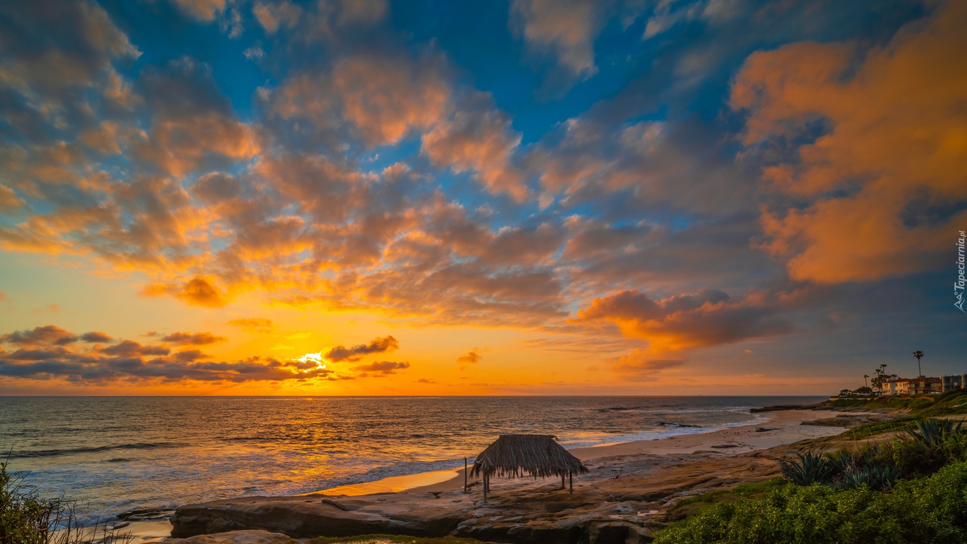 Edytor tapety: Plaża i morze o zachodzie słońca