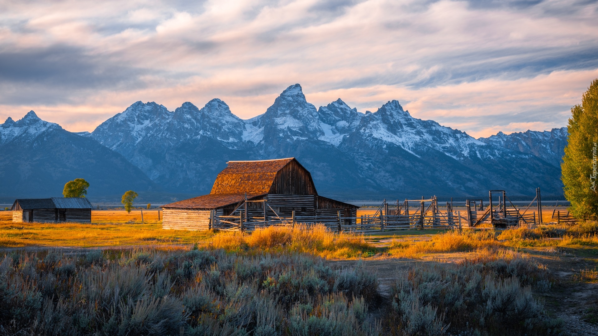 Edytor tapety: Drewniana chata na tle gór gór Teton Range