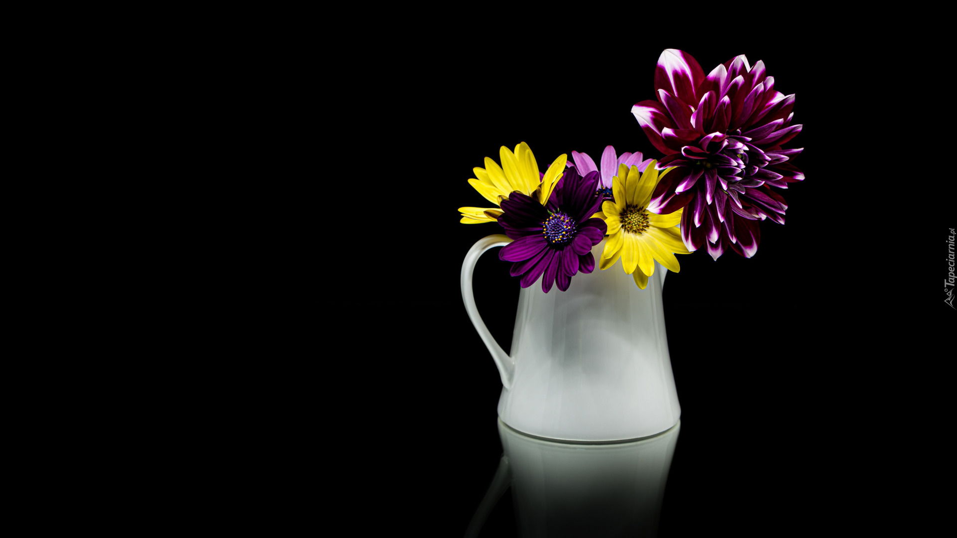 Edytor tapety: Stokrotki afrykańskie i dalia w dzbanku