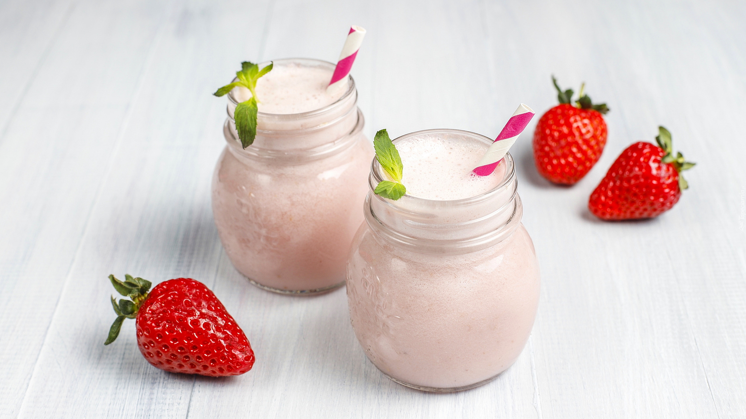 Edytor tapety: Słoiki z koktajlem truskawkowym