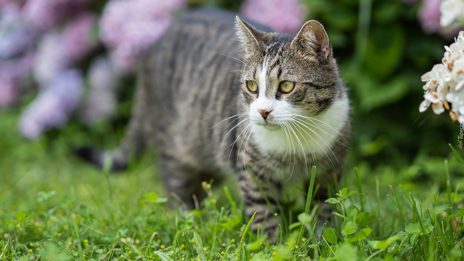 Edytor tapety: Bury kot w trawie