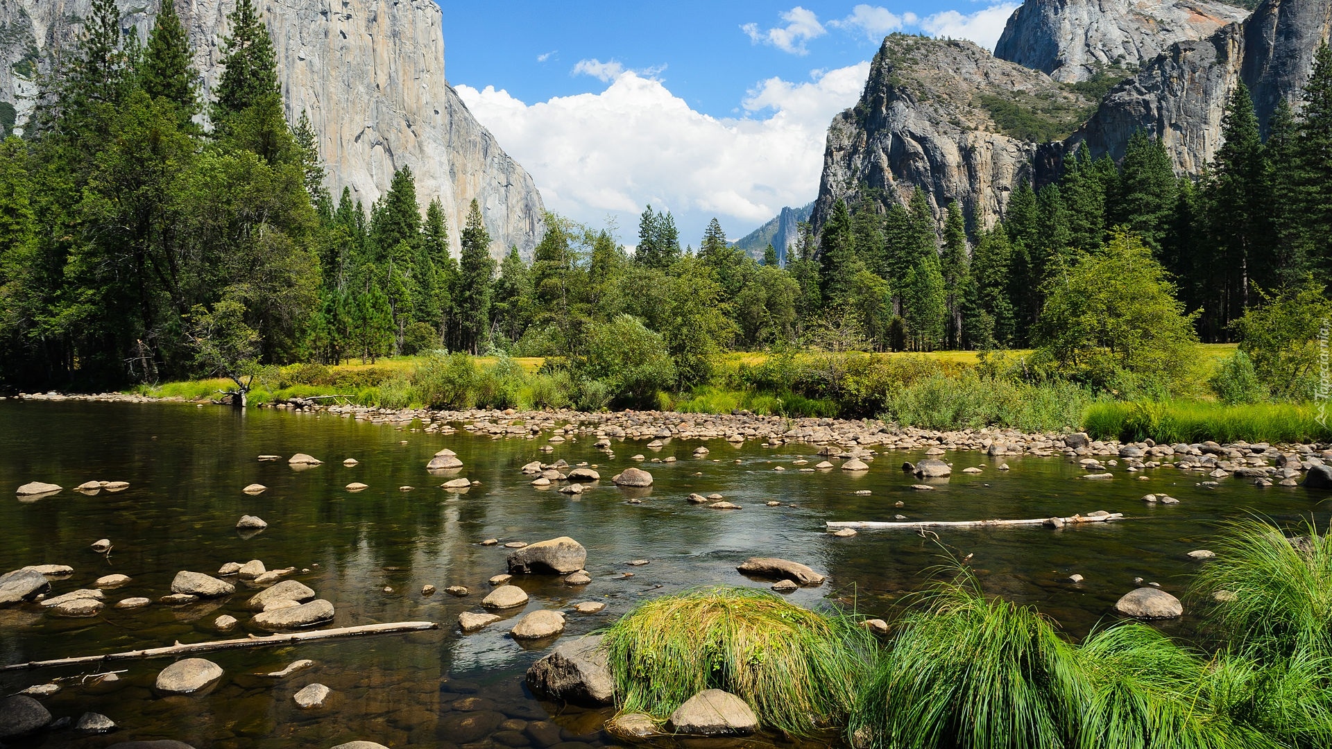 Edytor tapety: Rzeka Merced River na tle gór Sierra Nevada