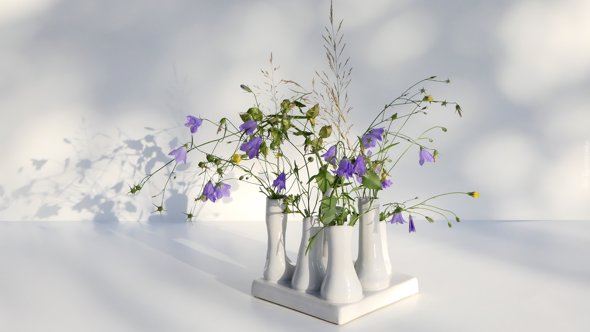 Edytor tapety: Polne kwiaty w białych wazonikach